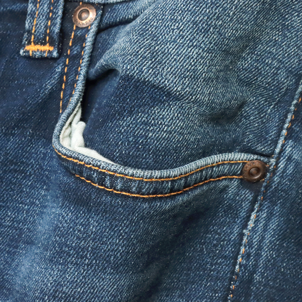 オーガニックコットンをベースとしたストレッチデニム。ブランドを代表するスリムテーパードシルエット。腰まわりに適度なゆとりを持たせつつ、膝下から裾にかけてスッと細くなるラインが特徴で、脚を自然に長く、きれいに見せてくれます。