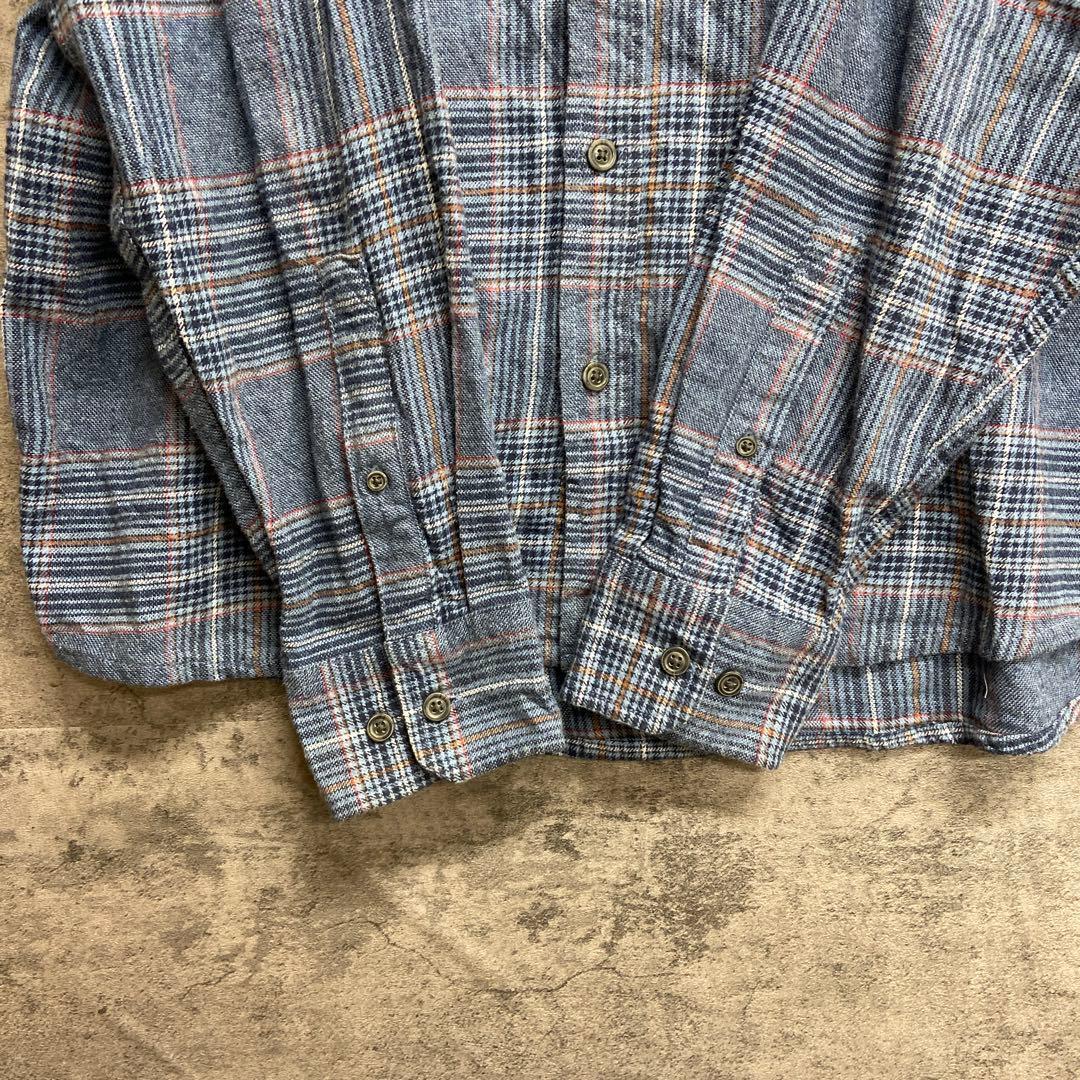 多色マドラスチェックシャツです。ブルーを基調にした柔らかい色味で、古着らしいゆったり感のあるXLサイズです♪