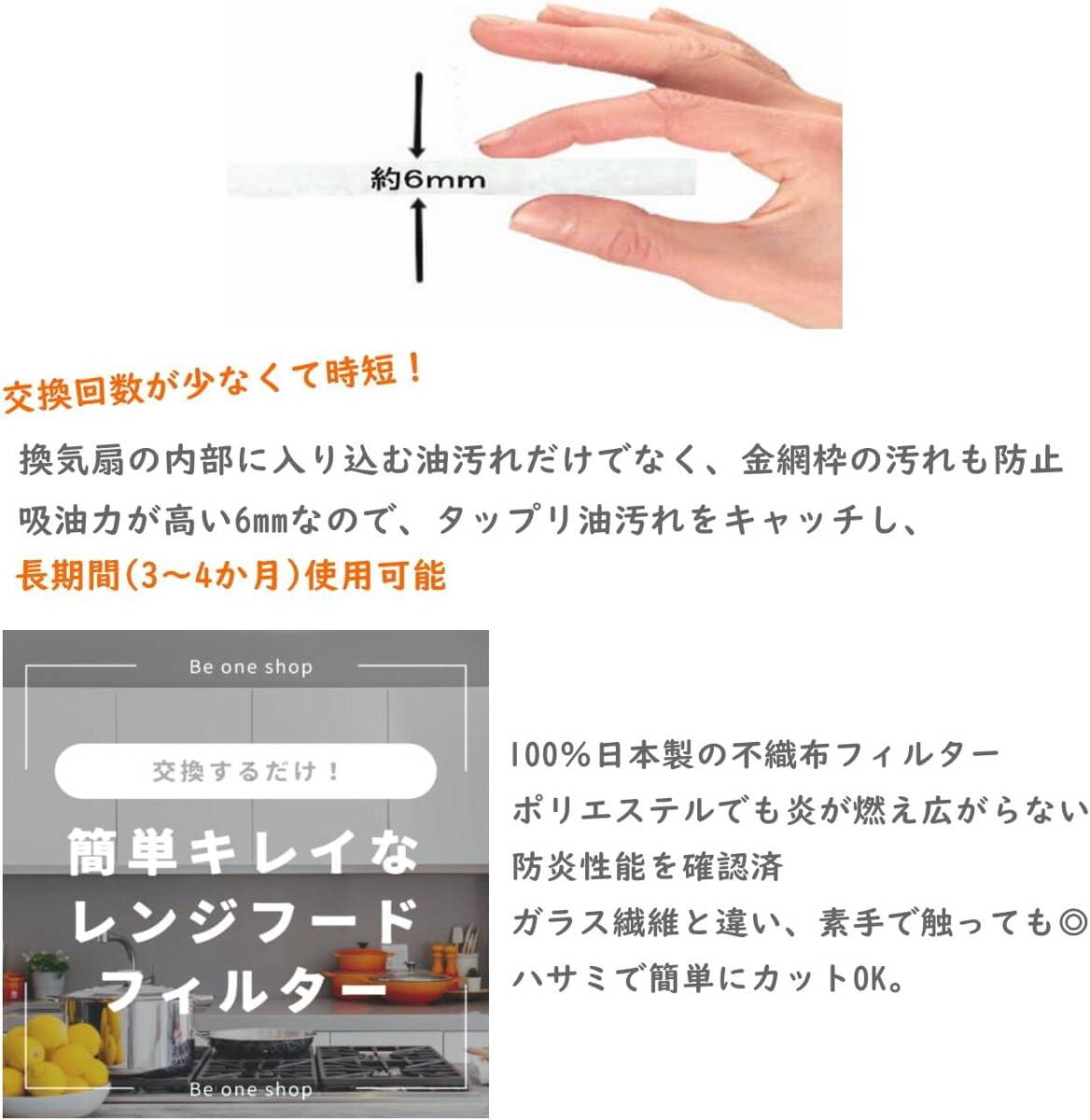 ビーワンショップ 深型ブーツ型用 換気扇フィルター(45cm×90cm 1枚) 特厚6mm 超取付簡単 レンジフィルター 換気扇カ