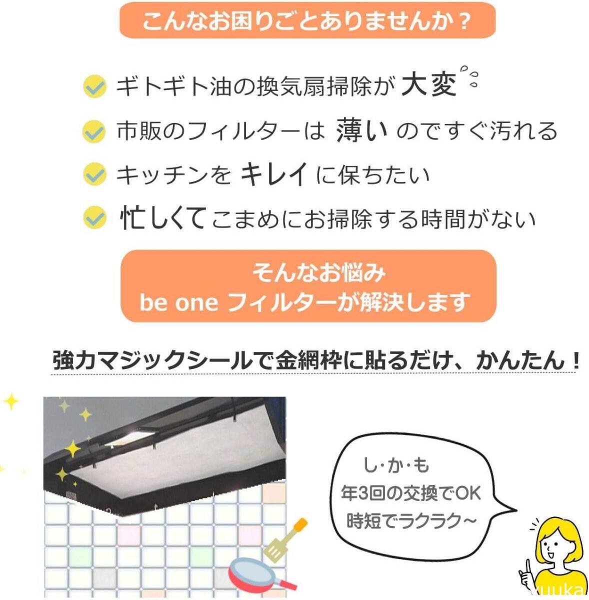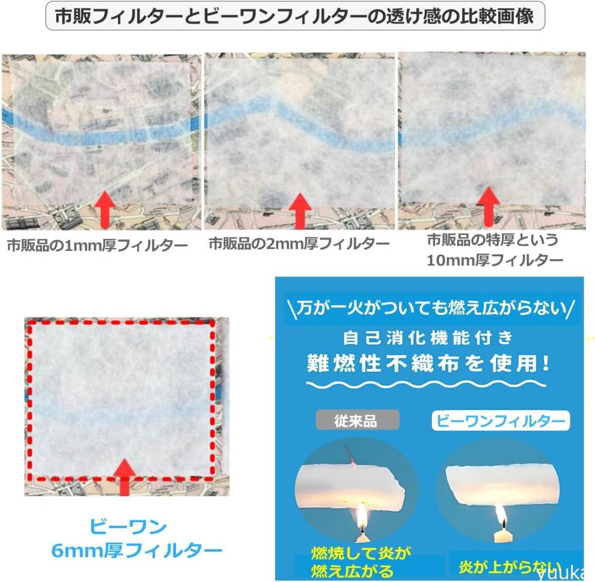 ガラス繊維のフィルターは粉々になったガラスを吸い込むリスクがありましたが、ビーワンフィルターは不織布なのでお好きなサイズにカットも可能です。