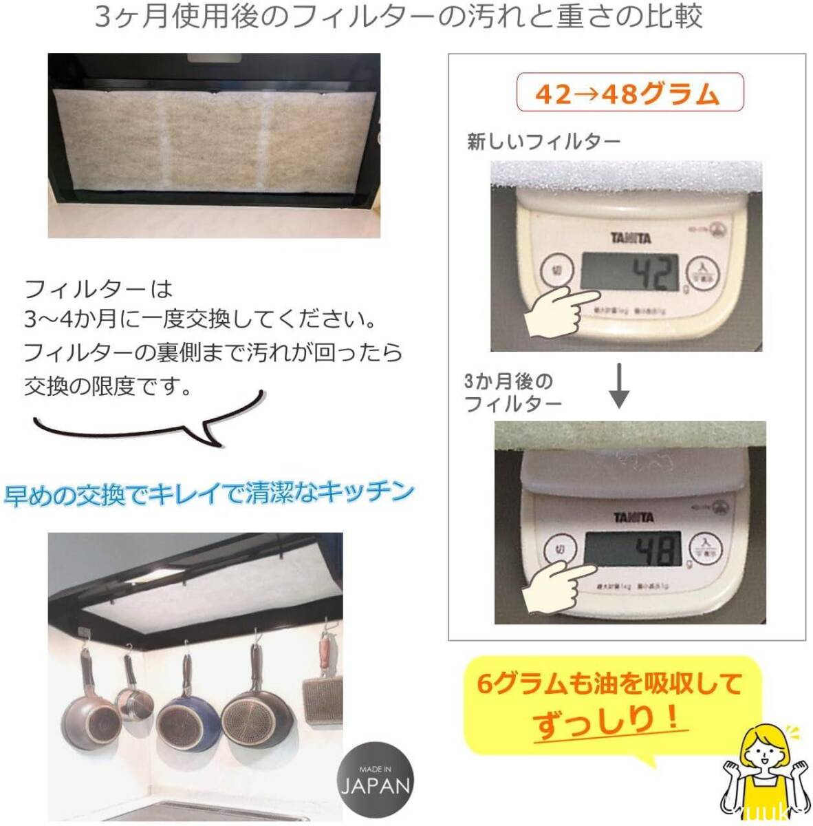 吸油力が高い6mm特厚フィルターなので、しっかり油汚れを防ぎ、長期間(3~4か月)お使いいただけます。(交換回数が少ないので、時短)
