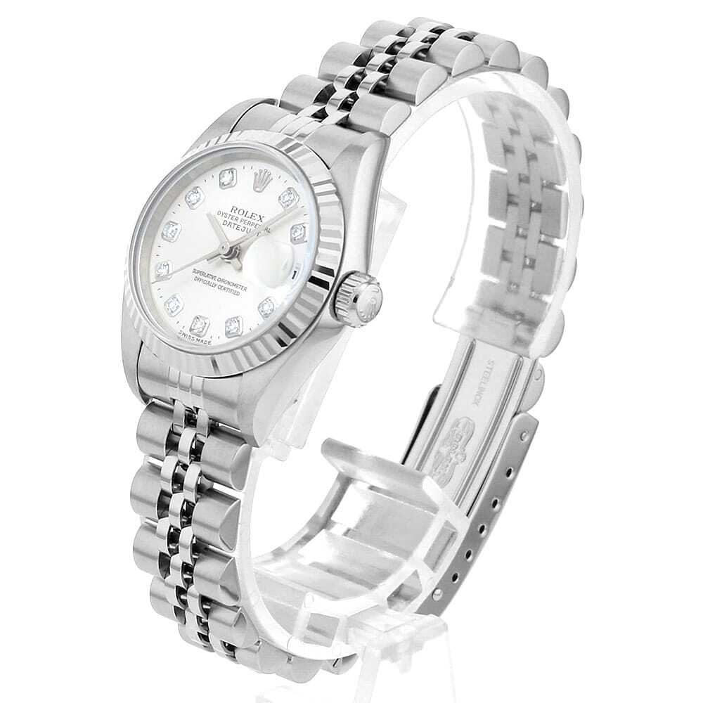 | モデル情報 | 1945年に誕生し、今やロレックスの顔とも言える"デイトジャスト"。ロレックスの三大機構(オイスターケース、パーペチュアル機構、デイトジャスト機構)を全て備えたモデルです。エレガンスとクラシカルなデザインで女性の腕元を華やかに彩ります。ダイアル色・ケース素材などの組み合わせは多岐に渡り、非常に多彩なバリエーションが存在するのが最大の魅力です。 |