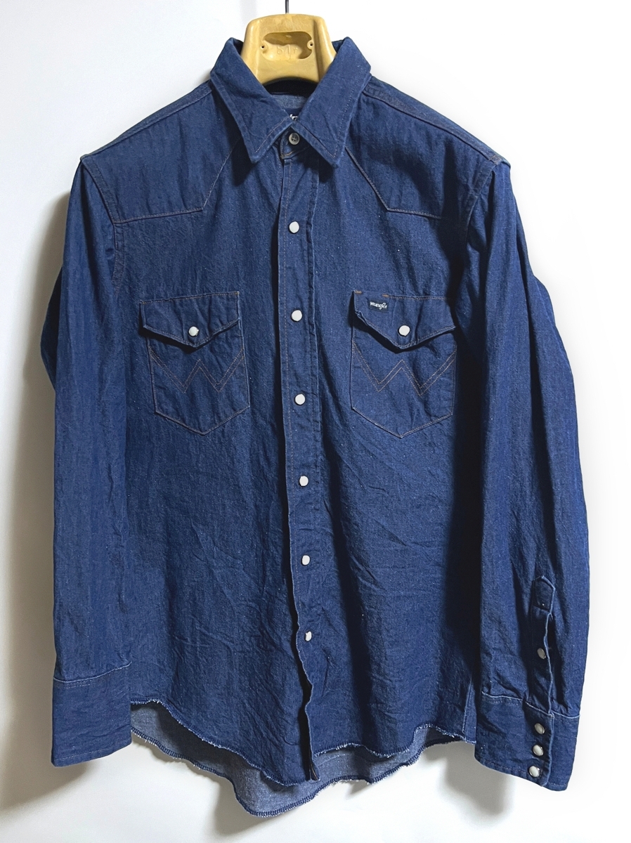 80s ヴィンテージ USA製 Wrangler 27MW デニム ウエスタン シャツ15 1/2 ラングラー 紺タグ