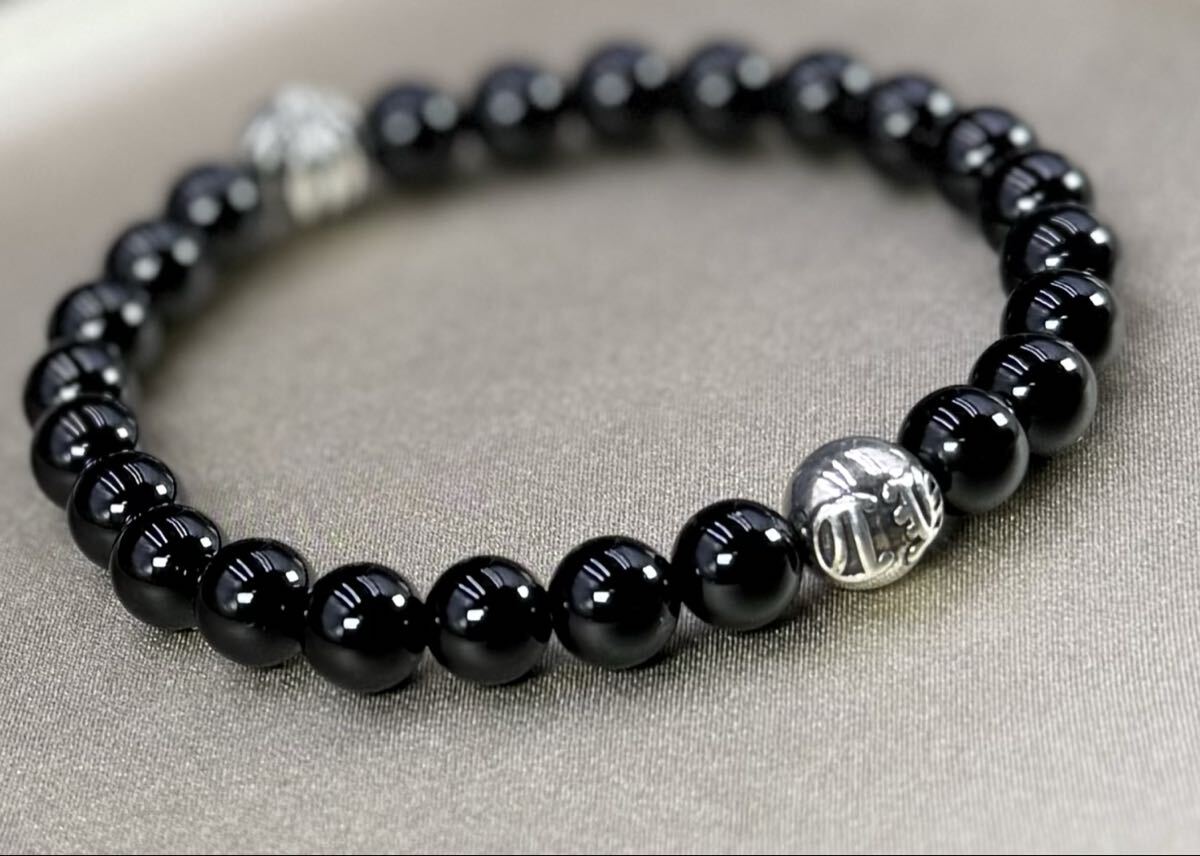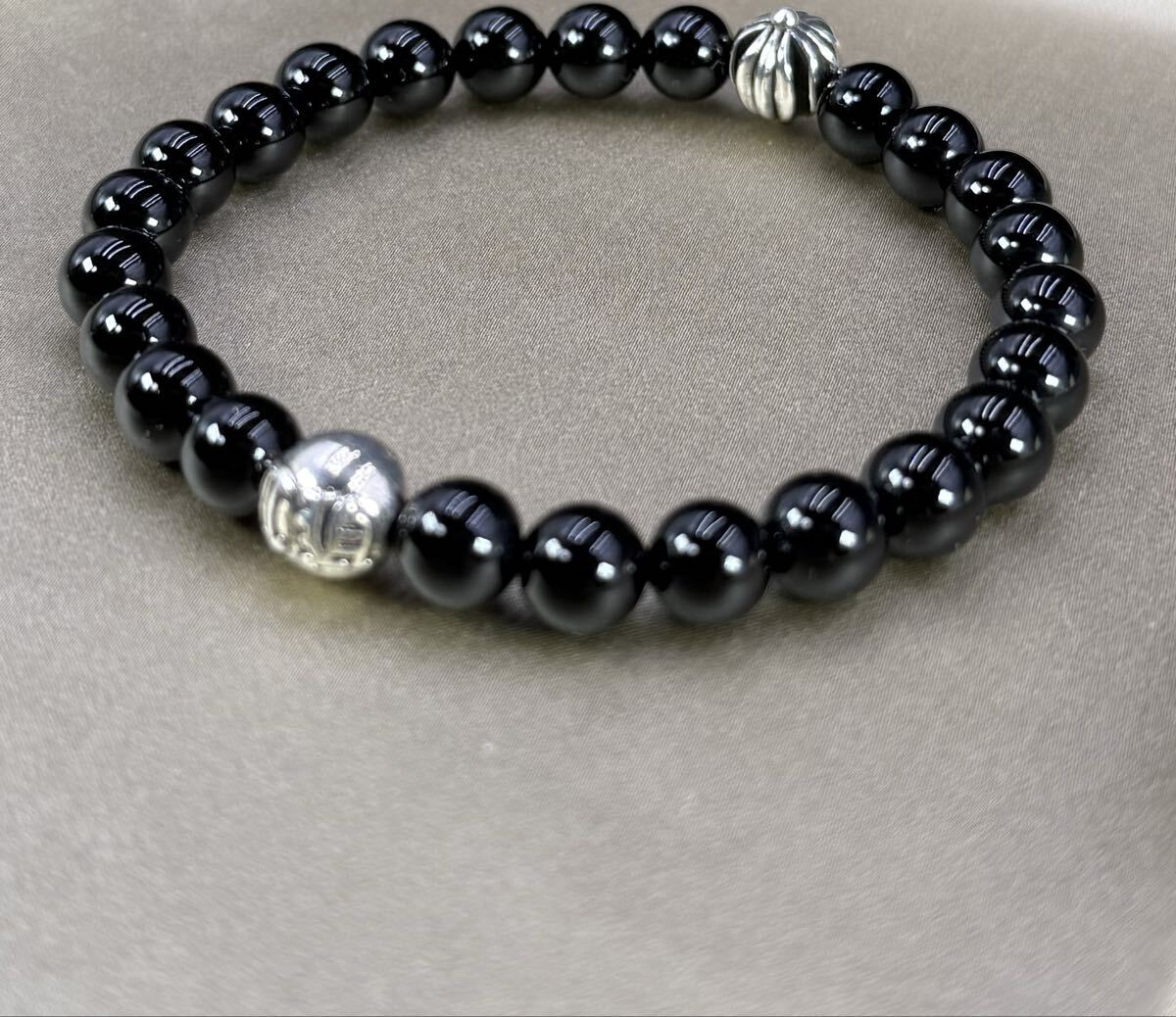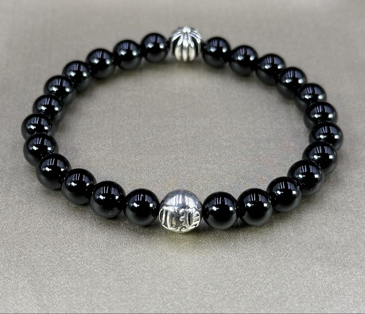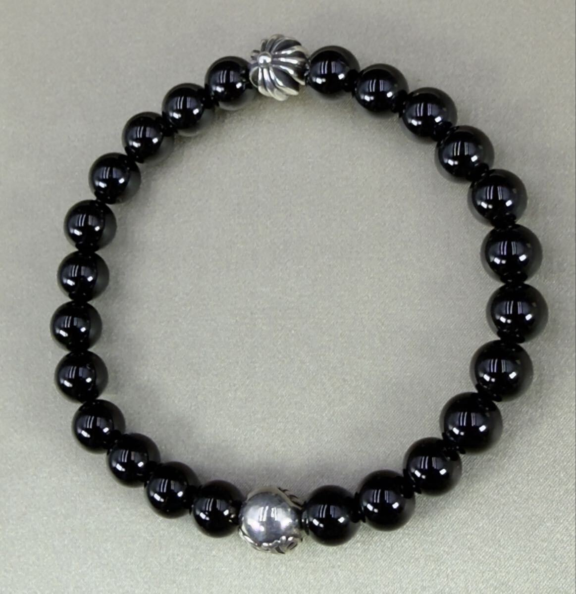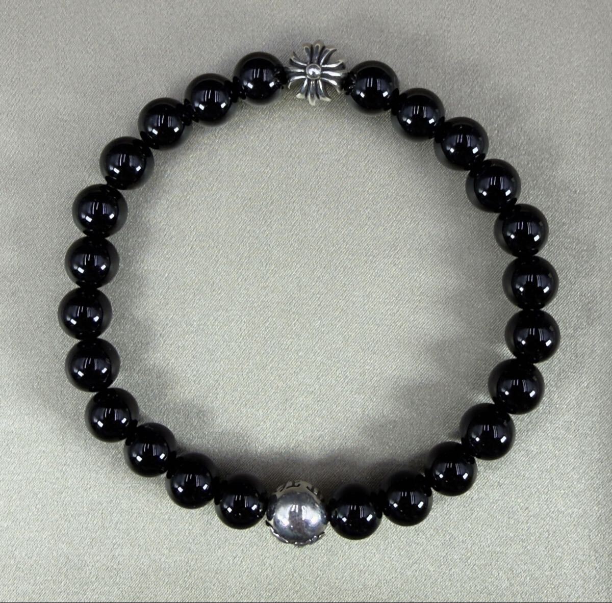CHROME HEARTS ブレスレット クロムハーツ シルバー925 ch クロス ch 10mm オニキス8cm 腕周り18cm