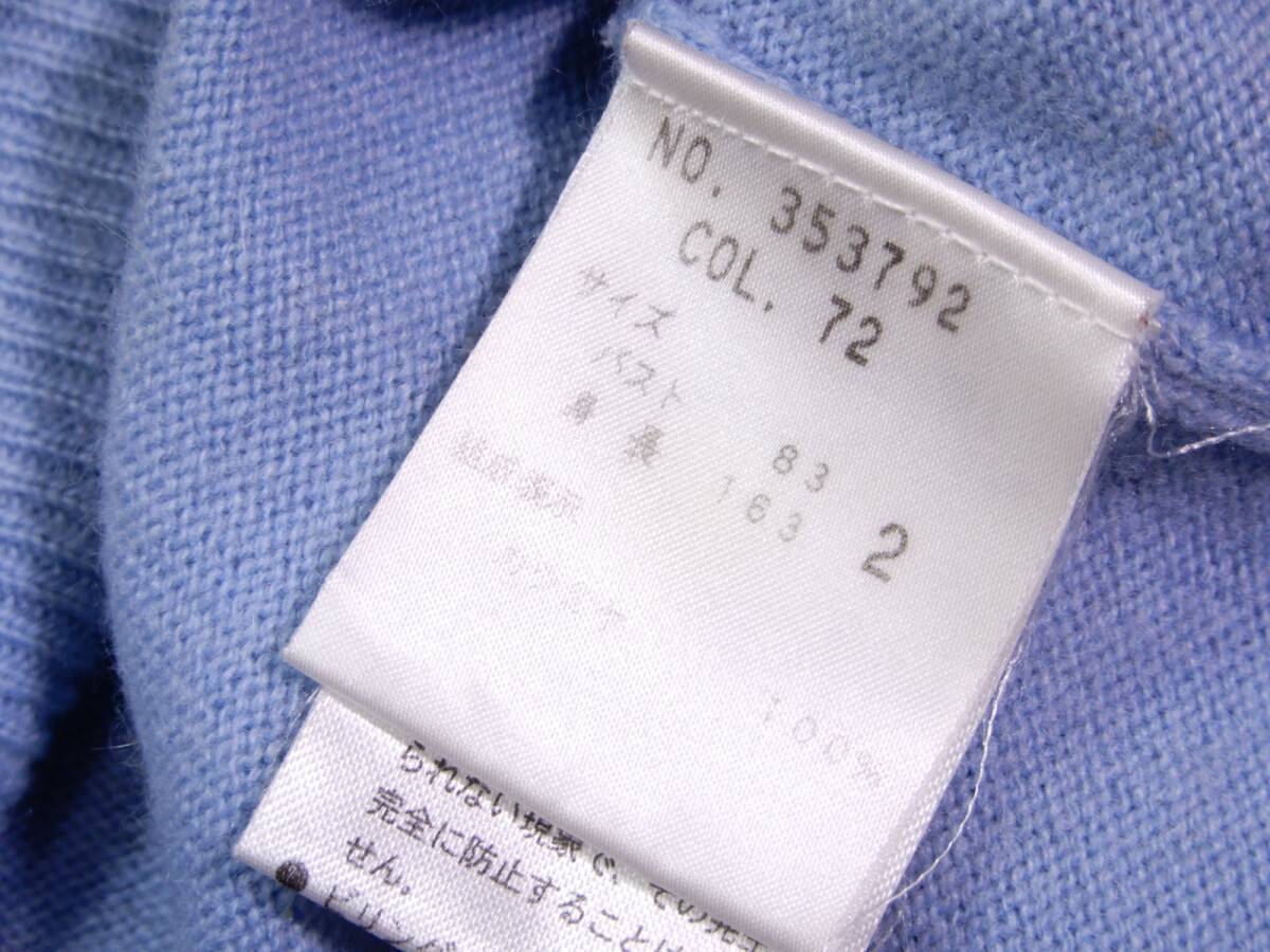 ◇状態 :目立った傷や汚れなし *袖先に写真の様な小汚れはありますが、その他目立つダメージなどはありません ◇仕様 裏地 : なし 伸縮性 : あり お洗濯 :専門店へご相談下さい ◇サイズ表記 : 2 ◇実寸 :肩幅35・身幅41・着丈54・袖丈57㎝位 *素人採寸ですので多少の誤差はご容赦ください ◇素材 :カシミヤ100% ◇カラー : ライトブルー系 * 実物に近いように撮影しておりますが、各御家庭でのモニター環境等により、お色など見え方が異なる事がある事をご理解の上、入札をお願い致します。 | ||