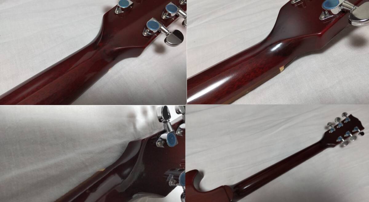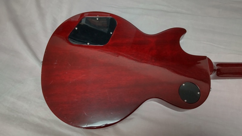 2004年製Gibson Les Paul Studio WR中古ジャンク品、ソフトケースやローラーブリッジ調整レンチ2本付き。 数年前に現状のまま譲り受けて以降、ほとんど弾くことなくそのまま保管していました。傷や打痕などありますが全体的に艶を保ち年式の割には奇麗な部類に入るかと思います。ネックのヒビ補修歴ありで入手しましたが写真のとおり完全に補修されており現状でも木部の割れは見当たりません。ピックアップ他が他社製に交換されており出品直前に音出し確認したところフロントピックアップは深く張りのある音色がしますが、リアピックアップは音が出ない状態(原因不明)です。以上のことから中古ジャンク品で出品します。ネックは弦を緩めた状態で概ねまっすぐ、トラスロッドは回したことはなく調整可能、フレットは8割程度の残、弦高は12フレット頂点から約1.8ミリで音の詰まりやビビリはありません。その他の状態は写真でご判断願います。ソフトケースは新品ですがビニール製の薄い汎用タイプで簡易的な運搬用です。中古ジャンク品にて状態不問、返品不可をご了承の上、ご入札願います。新規や悪い評価のある方はトラブル防止のため削除させていただきます。また、商品発送中の輸送事故が発生した場合は、落札者様でご対応願います。商品受取後は速やかに受取連絡をお願いします。以上をご理解の上、ご入札下さい。ゆうパック着払い(170サイズ)で発送します。