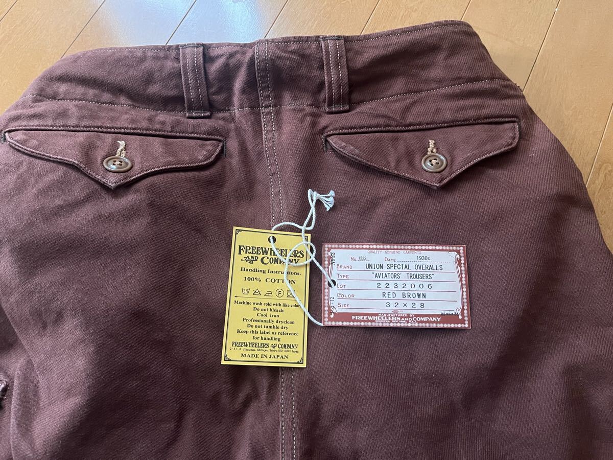 フリーホイーラーズのトラウザーズを出品します。 自宅ワンウォッシュのみ。 厚手でコシのあるトラウザーズです。 サイズは32X28です。カラーはRED BROWNです。 色違いも出品中です。
