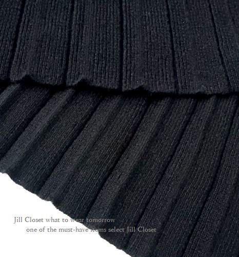新品*BLACK【送料185円】伸縮◎リブ切替え*千鳥柄&プリーツ加工ニットプルオーバー*チュニック8018