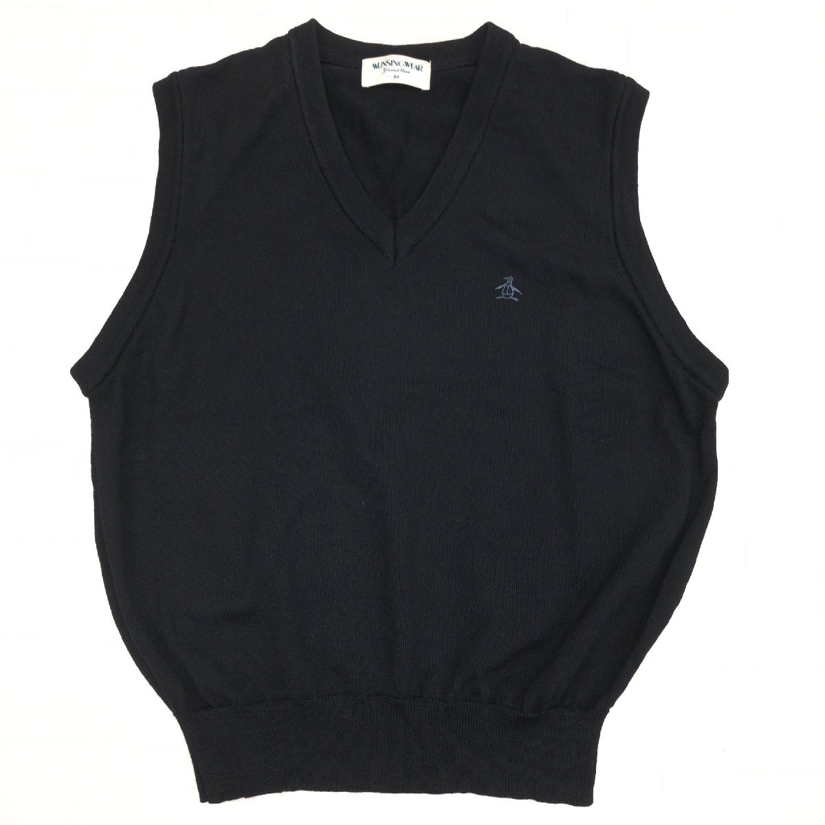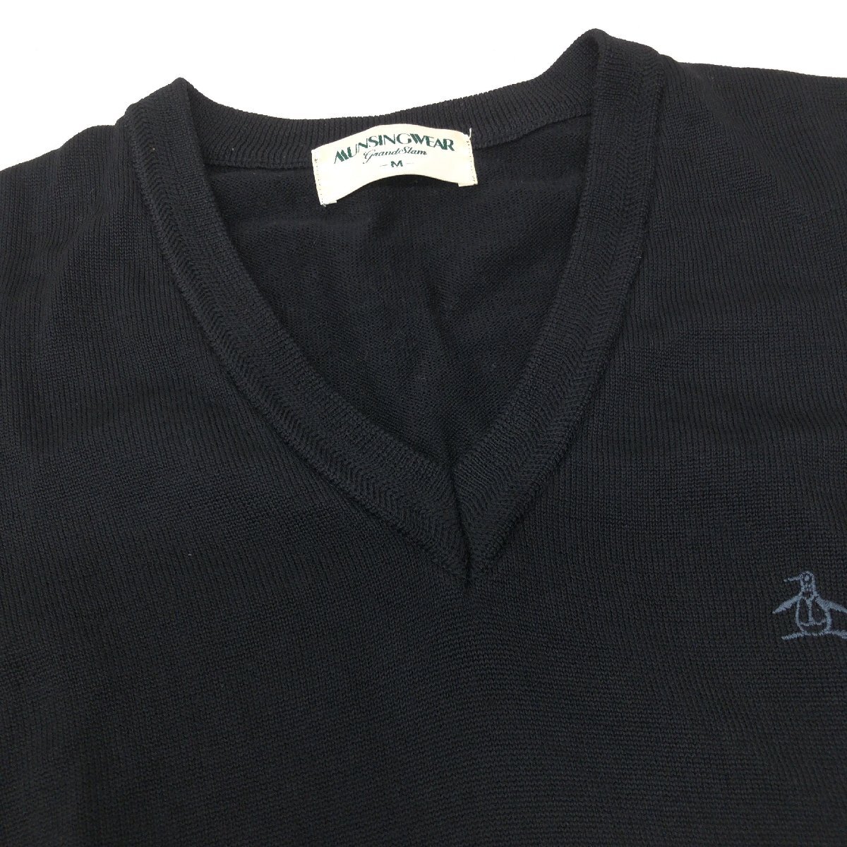 MUNSINGWEAR マンシングウェア ペンギン刺繍 ウール100% ニット ゴルフベスト M 黒 ブラック セーター ゴルフウェア 日本製 メンズ 紳士