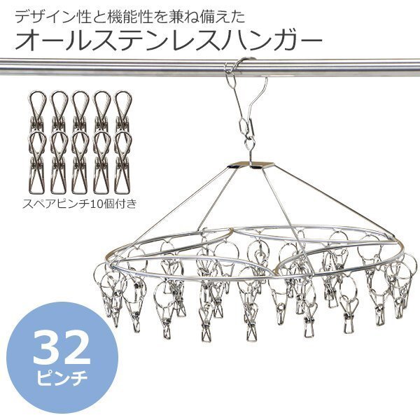 | 商品名 | 送料無料 ステンレスハンガー ピンチハンガー 丸型 ラウンド 32ピンチ 予備ピンチ10個付き フレーム径4mm オールステンレス SUS201 ピンチが絡まりにくい ハンガー 洗濯ばさみ ピンチ数32個 物干しハンガー 丈夫 サビにくい 洗濯物干し 長持ち 軽量 おしゃれ シンプル 落下防止 strhang40321p |