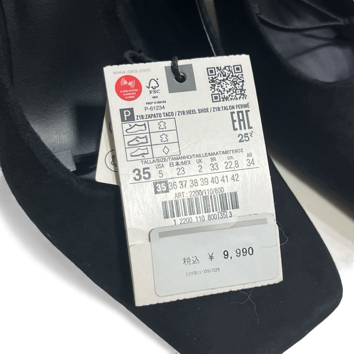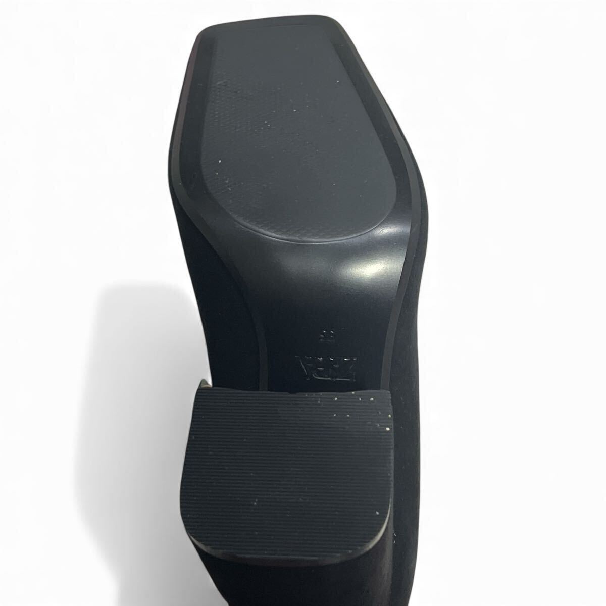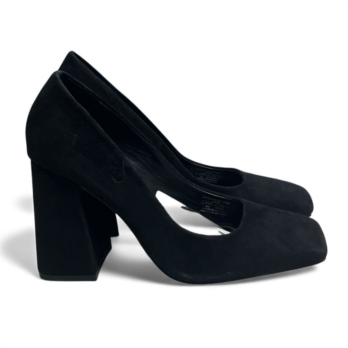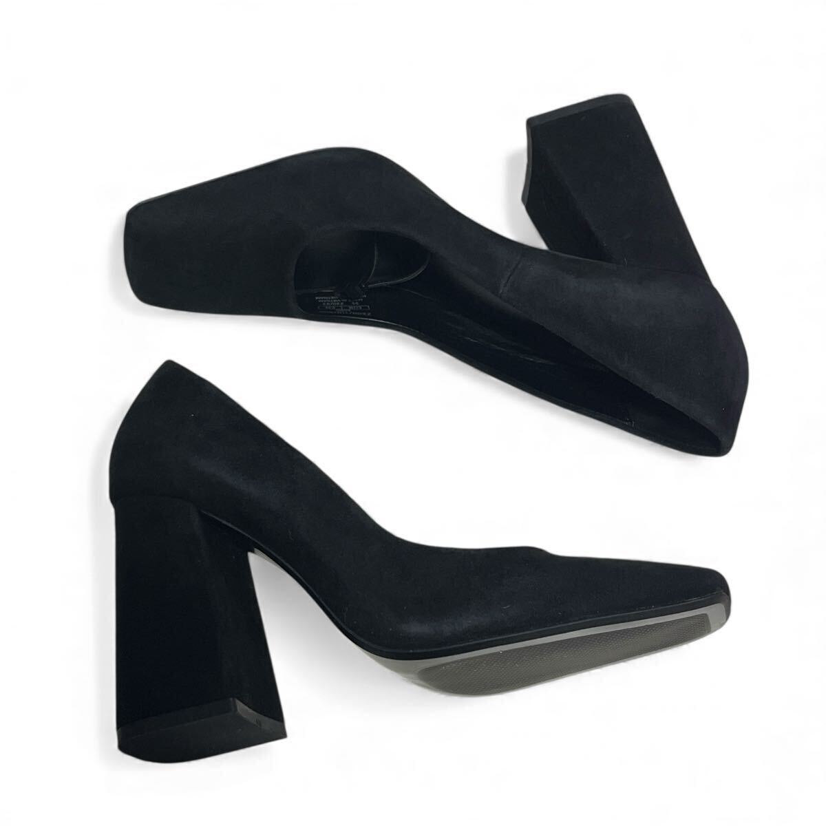 【新品】【未使用】ZARA ザラ パンプス スクエアトゥ ブラック スエード 黒 チャンキーヒール 35 22.5cm 22.8cm 23cm