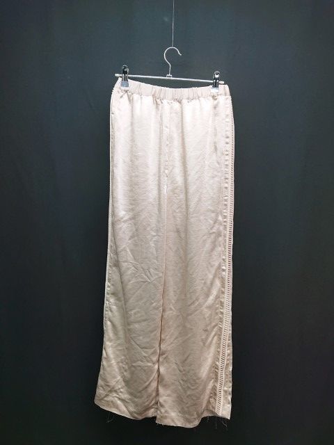 ◇ MOCA モカ シンプル ウエストゴム サラサラ 光沢感 ストレートタイプ パンツ サイズF アイボリー レディース E