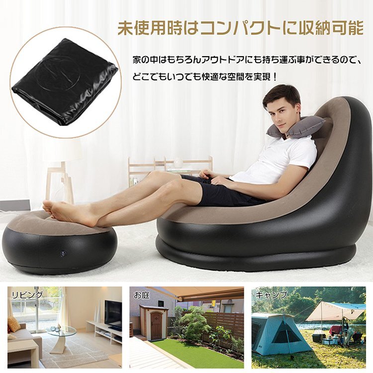 送料無料 ソファー イス チェア 椅子 エアー オットマン付 ラウンジチェア ベッド アウトドア インテリア コンパクト収納 一人掛け zk201