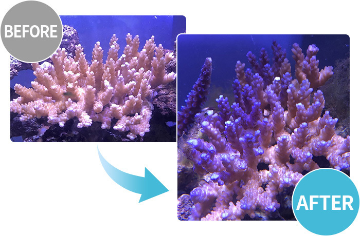 | 商品名:RioCOB LED シャローブルー 海水魚&サンゴ用、リオコブLED新登場! CCB(チップオンボード)構造により、高輝度かつ高い放熱性能を実現 色温度約27000Kの光で海水魚の赤色からサンゴの蛍光色まで美しく演出します。 ■特徴 ・CCB構造 放熱性の高いアルミシートへ直接チップを貼り付ける構造で、高輝度と高い 放熱性の両立を実現しています。 ・ワンチップ構成 放射場所による色ムラがなく、生き物に余計なストレスがかかりません。 ・高い発光効率 722lm/12Wとなっています。 ・色温度 約27000Kの光で海水魚の赤色からサンゴの発光色まで様々な色彩が 美しく見えるような波長バランスに設定しています。 ・スペクトル サンゴの光合成、発色に必要とされる400~500nm、 600~700nmの波長域をしっかりとカバーしつつ、500~600nm付近の 谷を小さくするように設計されています。 ・設置灯具 軽くてコンパクトなので、設置、多灯は容易です。 一般的なアクアリウム用の口金E26の灯具で使用できます。 ※ヴォルテスソケットの反射板の効果により、直下15cmで約25%の照度向上UP 使用可能ソケット ・クリップスタンドアクア ・ティラクラシック ・ネオアーム ・ヴォルテスソケット ■注意点 ・本製品は調光機能の付いた灯具には対応しておりません。 ・必ず屋内でご使用下さい。 ・重量および操作性に十分耐えられる灯具に取り付けてご使用下さい。 ・画像の灯具、サンゴは含まれておりません。使用例です。 ■製品仕様 定格消費電力:12W 定格電圧:100V(50/60Hz共用) ルーメン:722lm 寸法:約φ95x114.5mm 重量:約140g 口金:E26 設計寿命:約20000時間 使用推奨温度:0~35℃ |