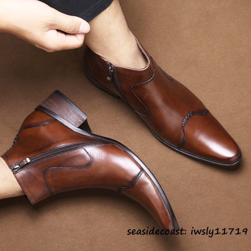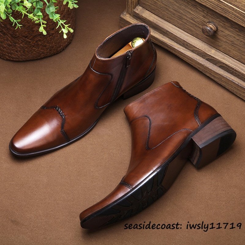 超希少■マーティンブーツ メンズ 本革 レザーブーツ 皮靴 職人手作り 厚底 ショートブーツ イギリス風 紳士靴 高級牛革 ブラウン 26.0cm