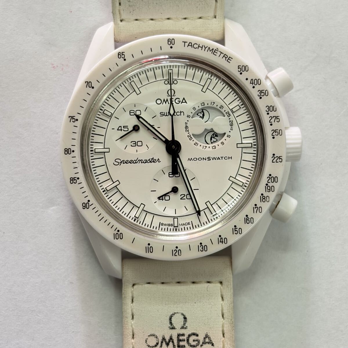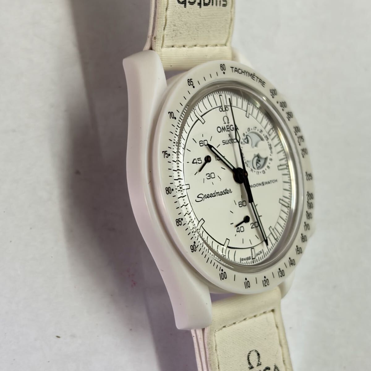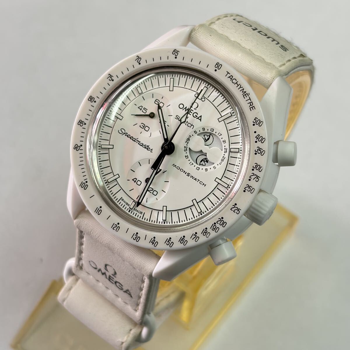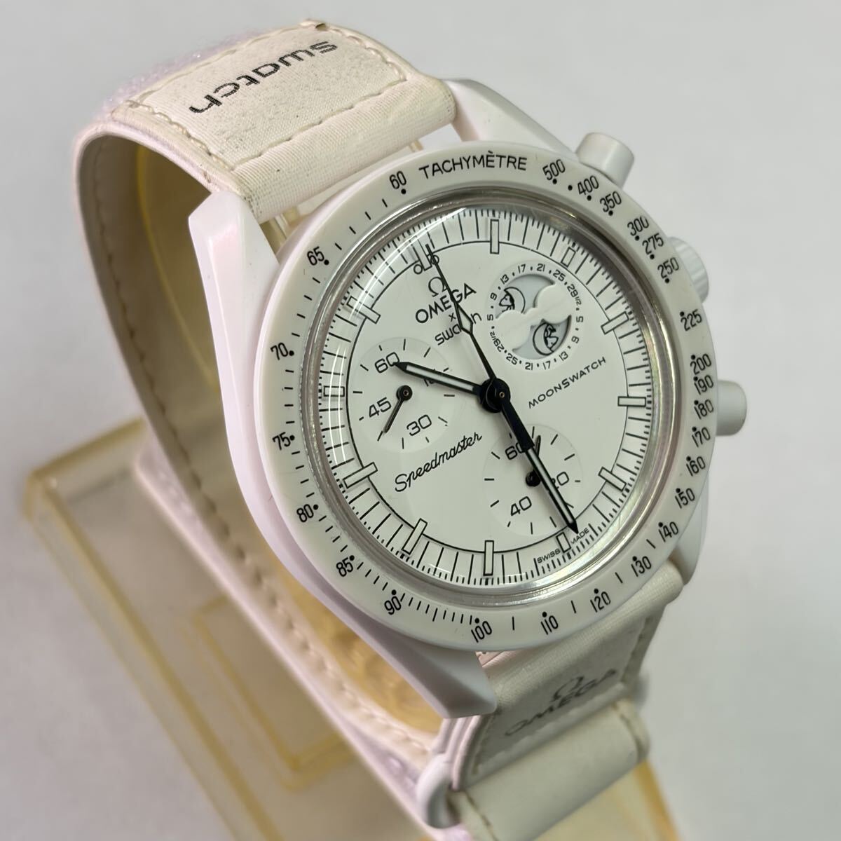 OMEGA×SWATCH オメガ×スウォッチ ミッショントゥザ ムーンフェイズ ホワイト スヌーピー メンズ腕時計 稼働品