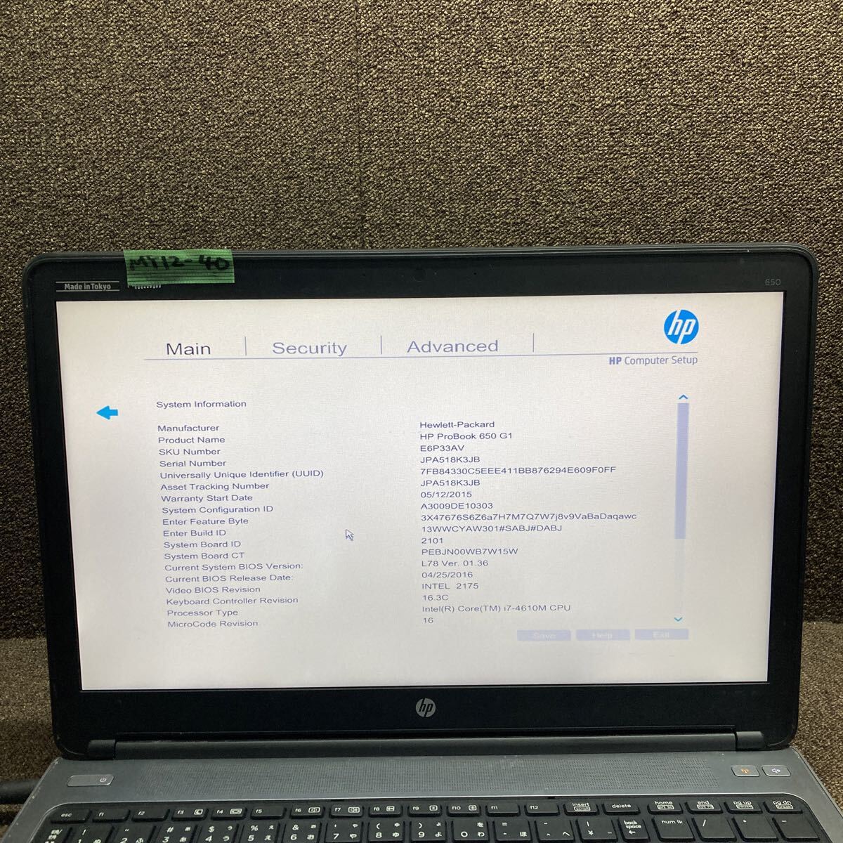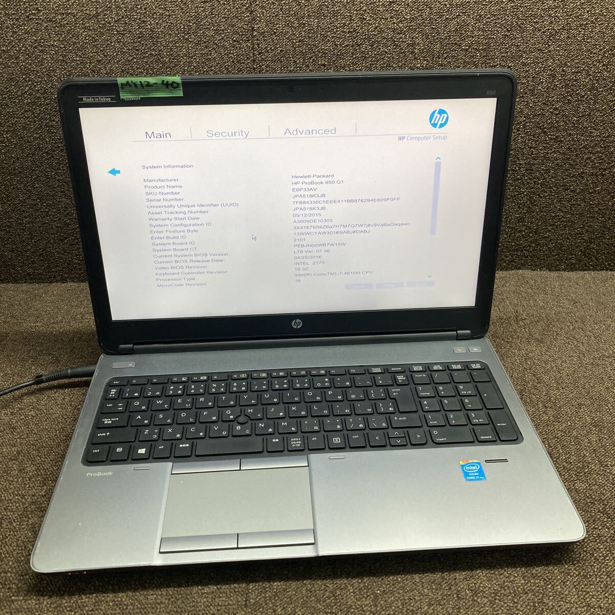 (当方の確認時の事になりますので到着後にBIOS立ち上がり、画面表示、通電などの画像の動作を保証するものではありませんのでご了承下さい)