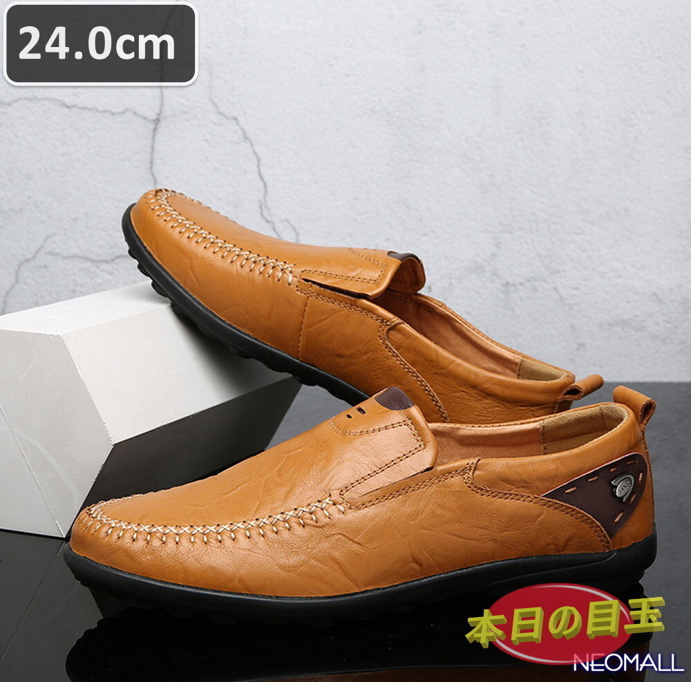 1円~ ☆ メンズ ビジネス 牛皮 シューズ ライトブラウン サイズ 24.0cm 革靴 靴 カジュアル 屈曲性 通勤 軽量 【623】
