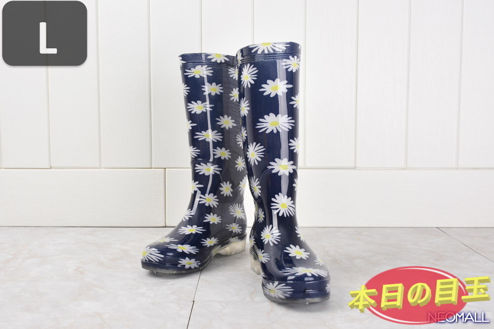 1スタ☆ レインブーツ【504】 Lサイズ7 フラワー 防水 レインシューズ レディース 雨靴 長靴 梅雨対策 防滑 防水 雨 雪 晴れ兼用