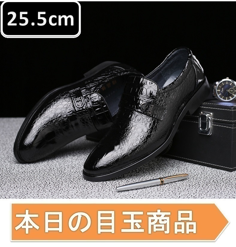 本日の目玉 ☆ メンズ ビジネス レザー シューズ ブラック サイズ 25.5cm 革靴 靴 カジュアル 屈曲性 通勤 軽量 【225】