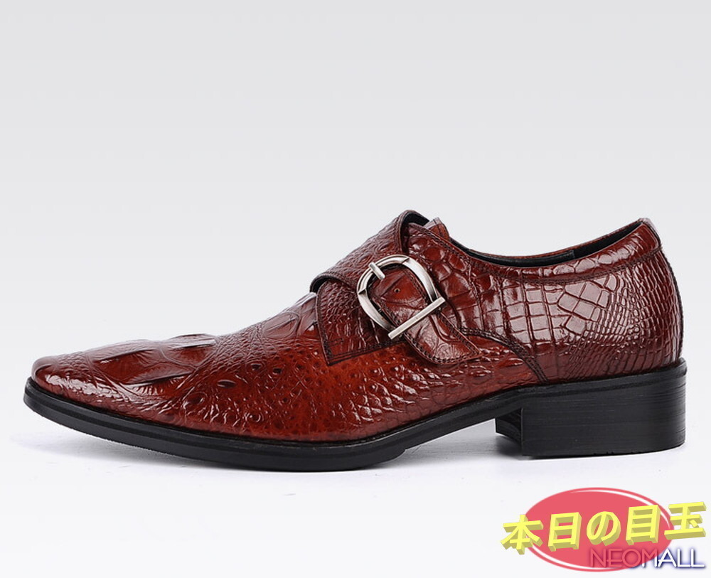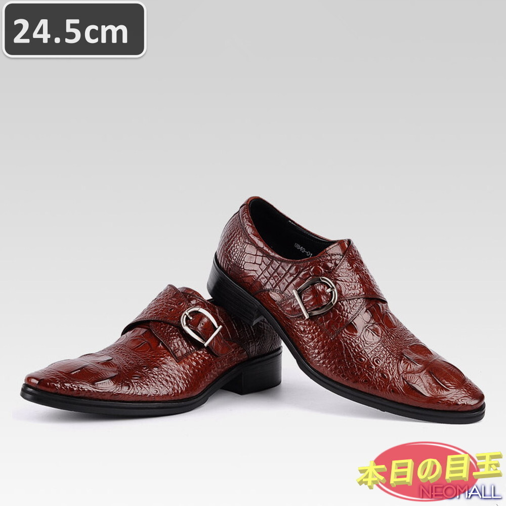 1円~ ☆ メンズ ビジネス レザー シューズ ワインレッド サイズ 24.5cm 革靴 靴 カジュアル 屈曲性 通勤 軽量 仕事 【614】