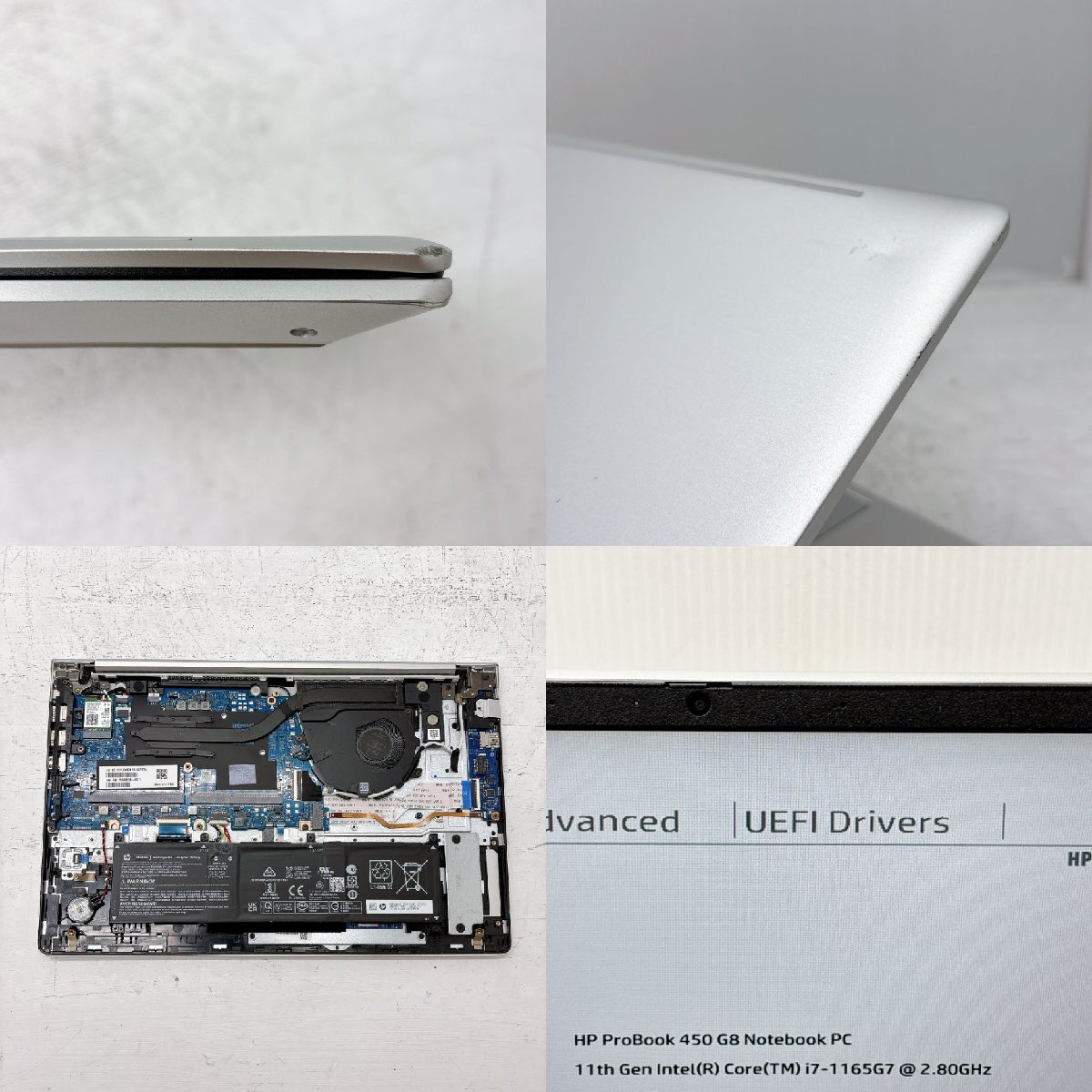 ・中古品ですので、経年なりの傷や汚れがあるものとお考えください。 ■ 天板:傷、薄い凹み ■ キーボード:テカリ、文字消え ■ パームレスト:細かい傷若干 ■ タッチパッド:比較的綺麗 ■ 裏面:傷、角部凹み ■ 液晶:傷 ■ その他:側面傷・凹み・ガリ傷、筐体歪み部分あり。ノートの開閉には支障はなさそうです。 |