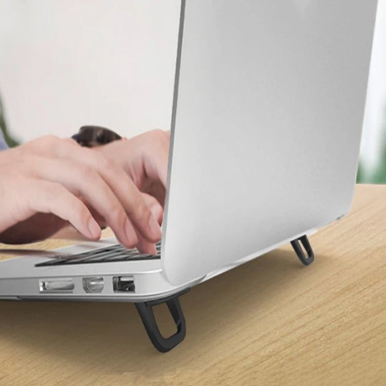 ◆ノートパソコンスタンド 放熱 折りたたみ式 貼り付けタイプ 小型 コンパクト 軽量 薄型 持ち運び便利 耐久 PCスタンド キーボード 卓上スタンド デスクワーク テレワーク【ブラック】NPTKS02S