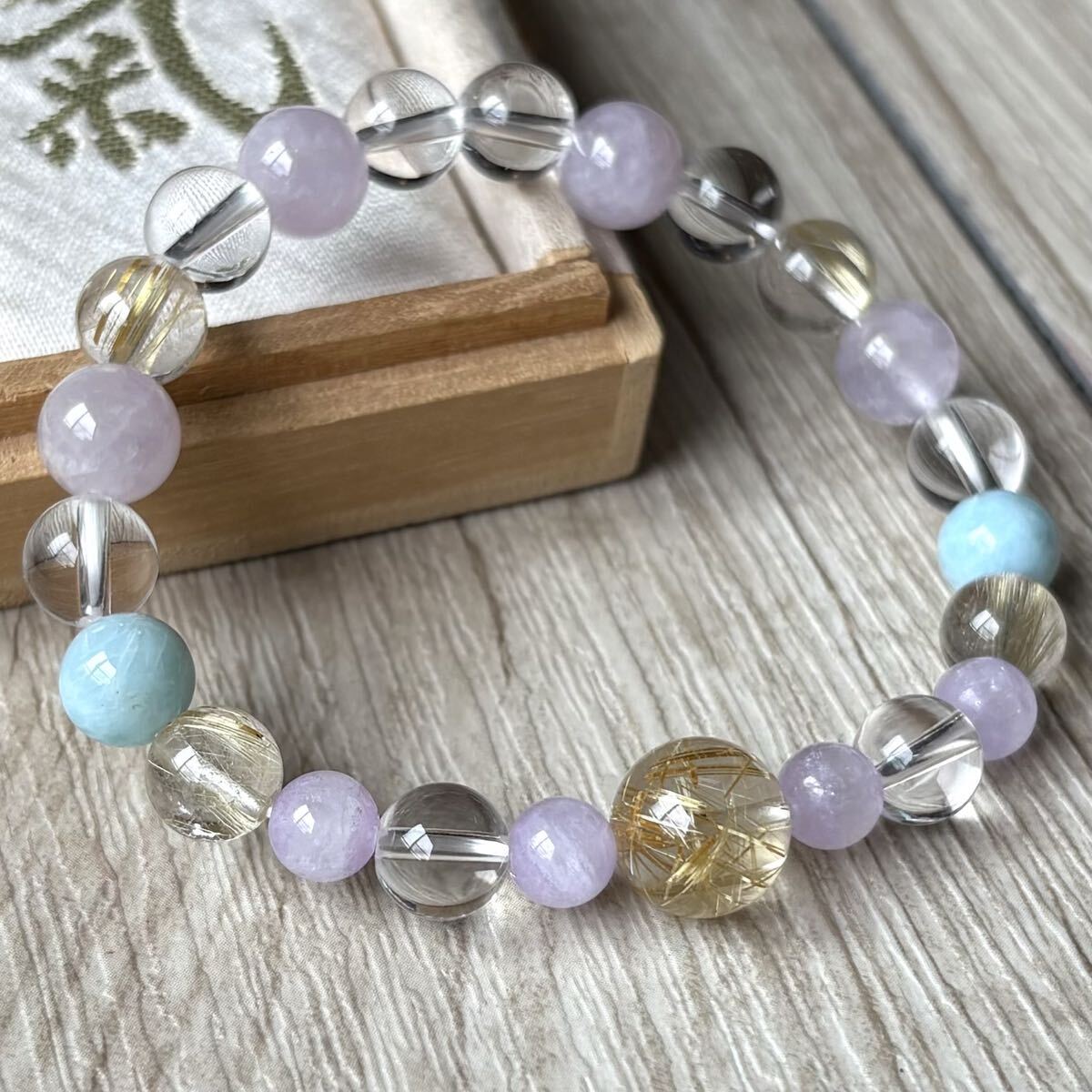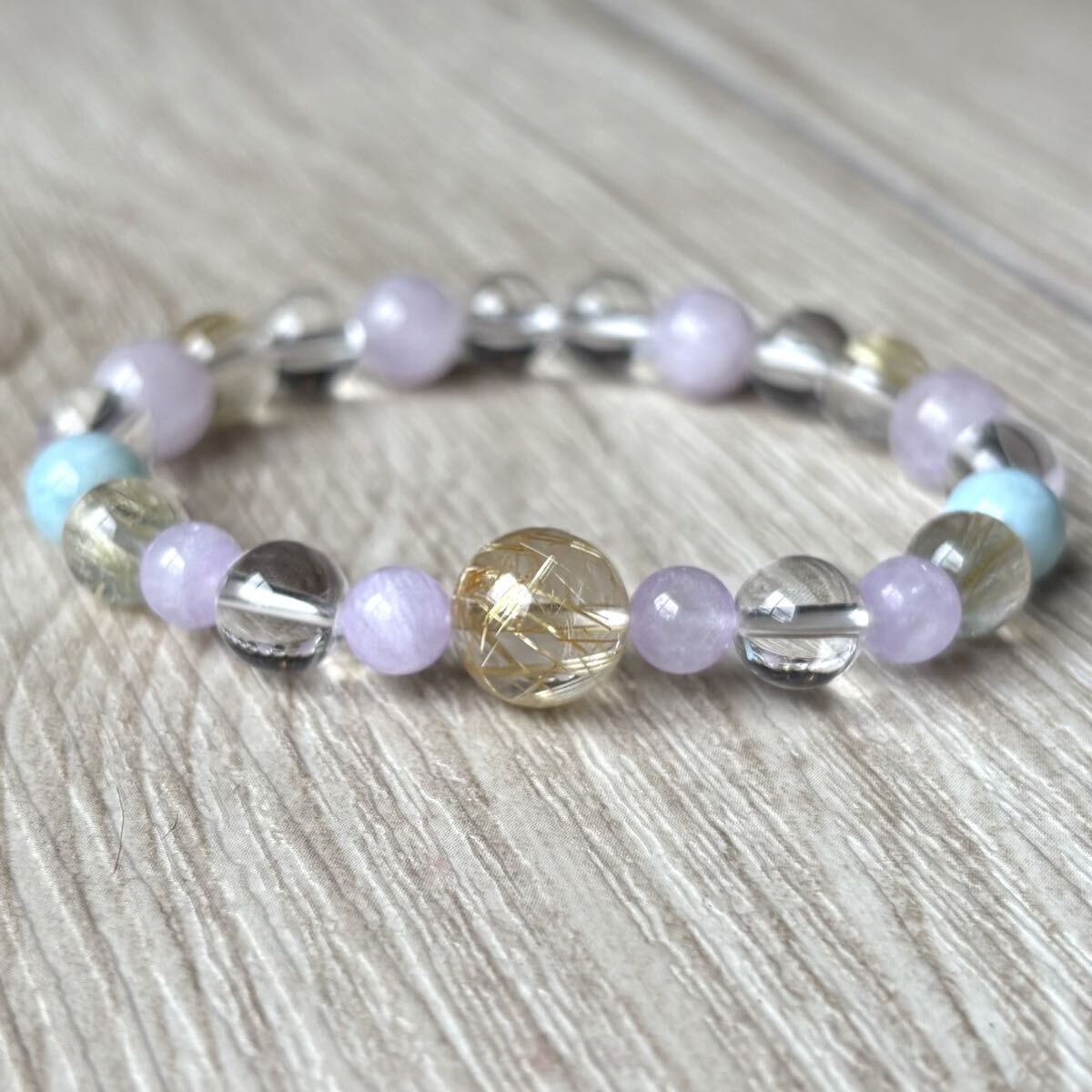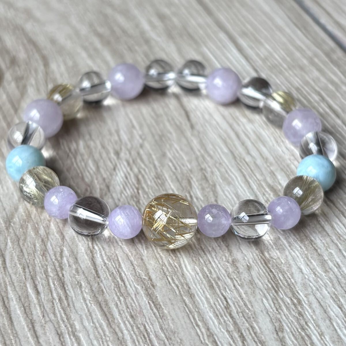 心を穏やかでストレスを緩和してくれるようなブレスレットに組み上がりました