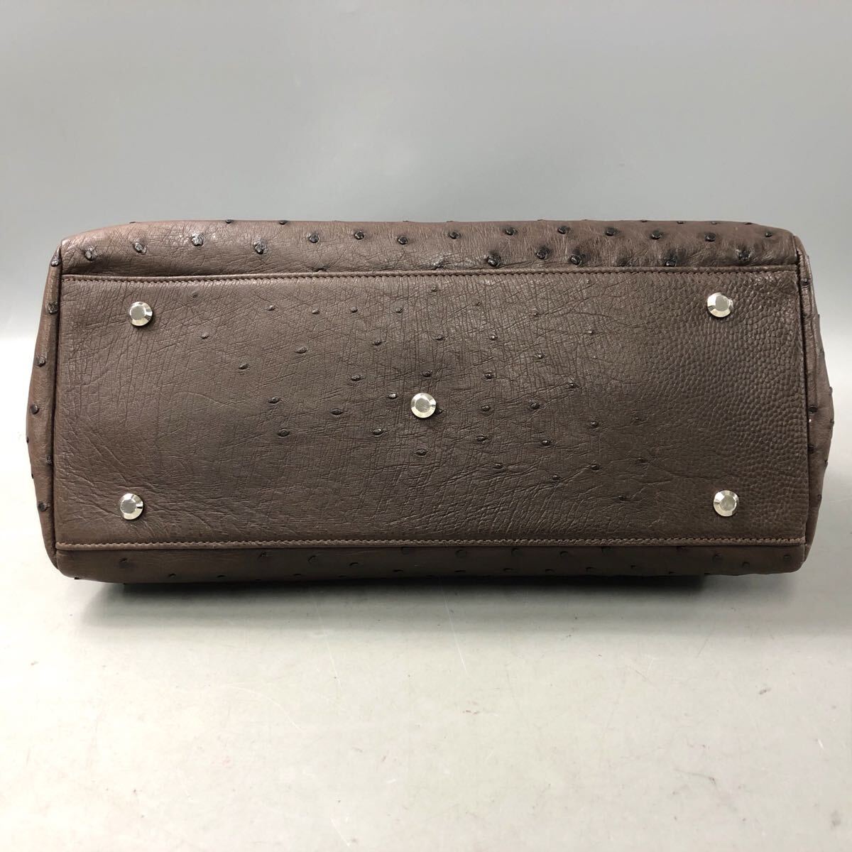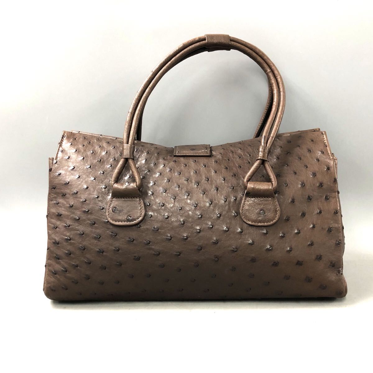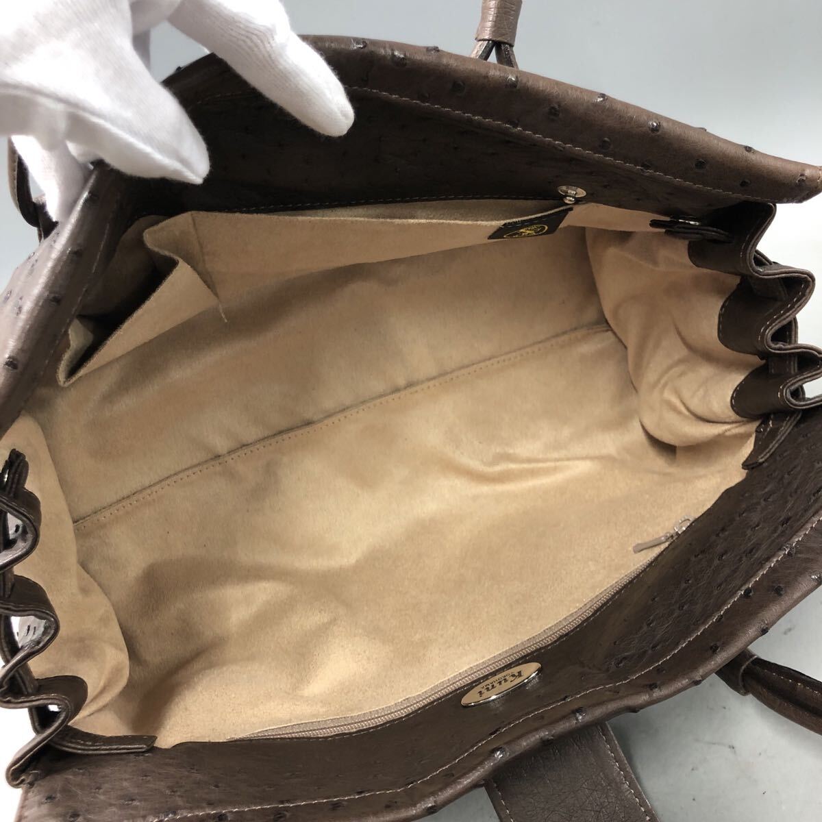 | ★F11139 JRA公認 Kuni YOKOHAMA オーストリッチ ハンドバッグ 茶 ブラウン ダチョウ革 エキゾチックレザー 日本製 クニ ヨコハマ | |