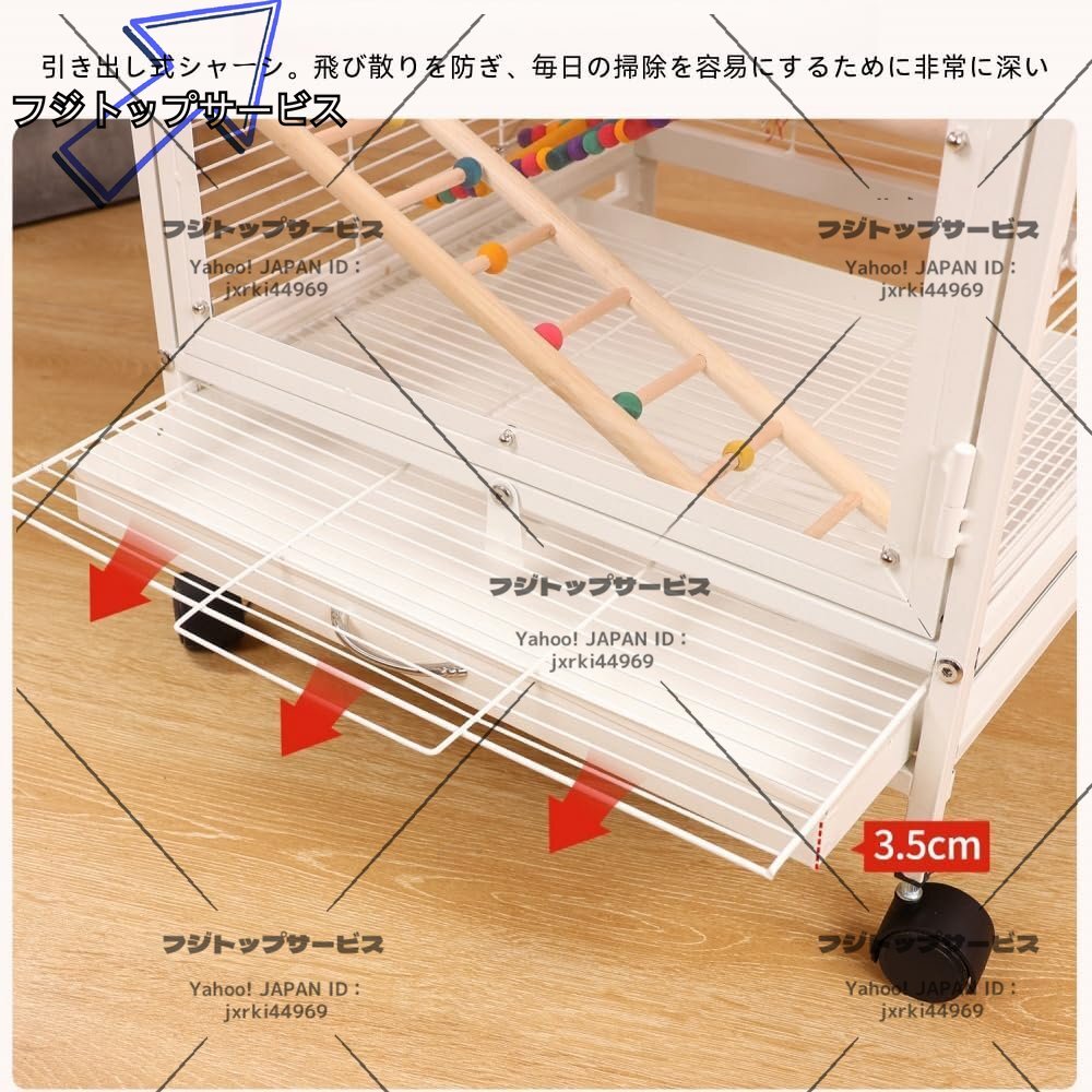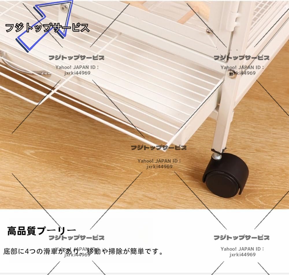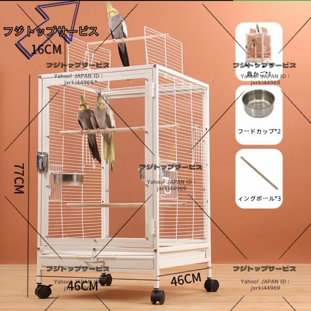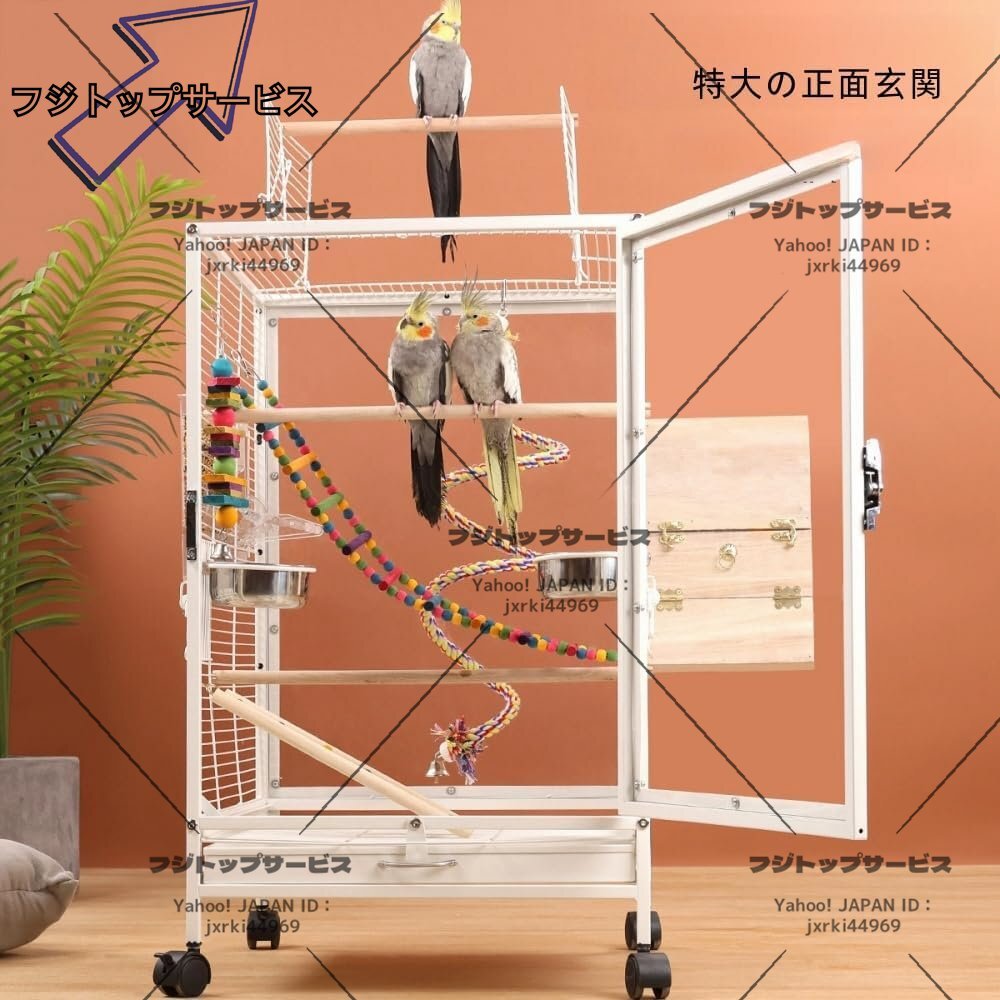 状態:新品未使用 商品の寸法 46L x 46W x 77H cm 材質 高張力低炭素鋼線+アクリル アクリルなので鳥が鑑賞しやすい:前面クリアの鳥かごなのでかわいい愛鳥の様子がよく見える。で鳥の写真を取りやすい。 お手入れ簡単:底に引出し式のトレイが付いているので、ふんや風切羽、食べかすなどの掃除が簡単です。 大きいサイズ:セキセイインコ、ゴザクラインコ、文鳥、オカメインコ、アフリカ灰色のオウム、アマゾンオウム、胸が緋色のオウム、黄金の太陽のオウム、アレクサンダー オウム、モンクオウムおよびその他の中小規模のオウムに適しています。 特大ドア: フロントドアは非常に大きく、オウムが簡単に出入りできます。 シーンのアレンジやおもちゃの置き方もオーナー様が簡単に。 含まれている付属品: 木製のスタンディング ポール 2 本、ステンレス カップ 2個、ユニバーサル ホイール 4 個。