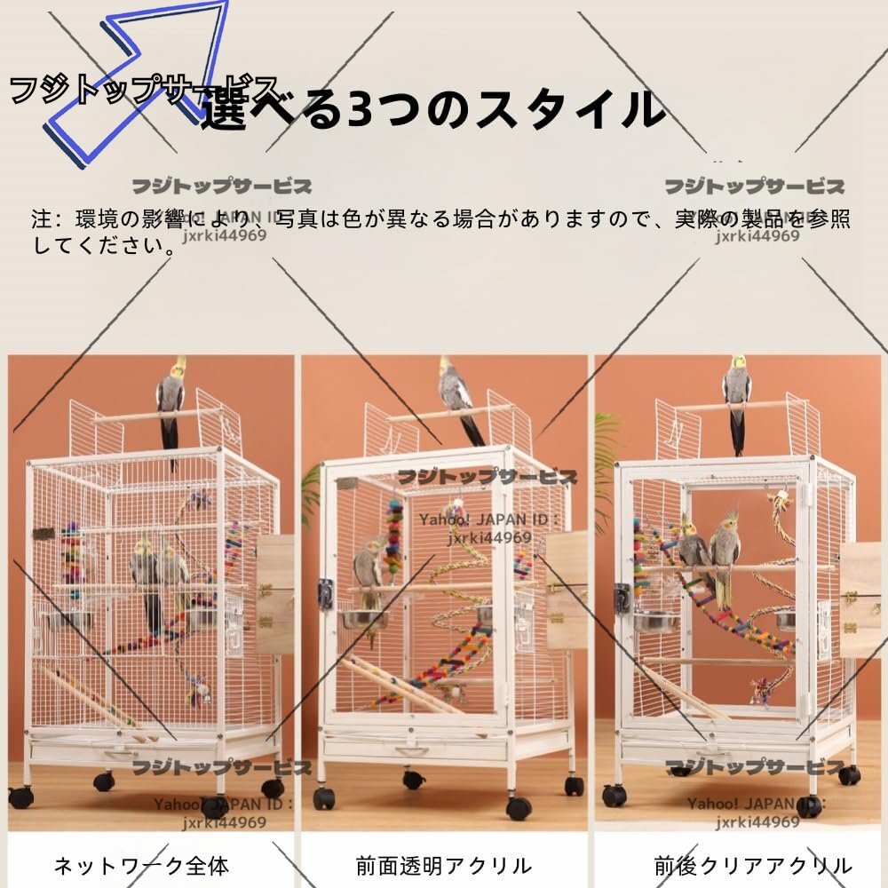 クリアアクリル鳥かご 複数飼い大型インコ ケージ セキセイインコゴザクラインコオカメインコ鳥籠 (前後クリアアクリル