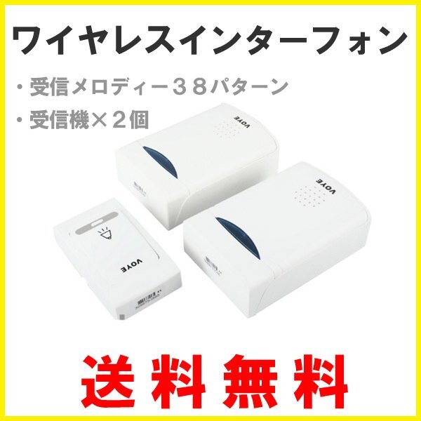 送料無料 ワイヤレスインターフォン(受信機×2個) 60メートル受信可 ワイヤレス チャイム インターホン ドアフォン ドアホン