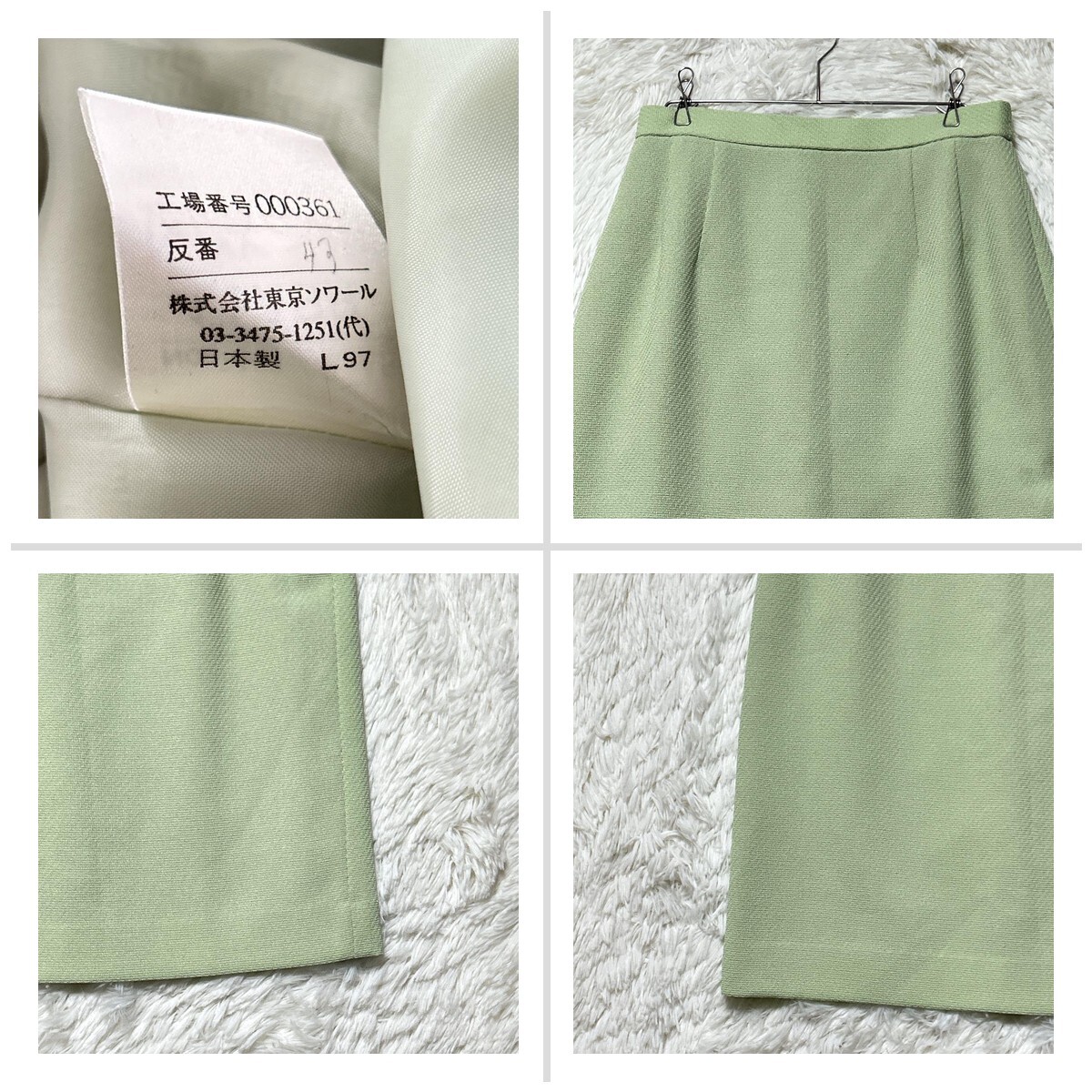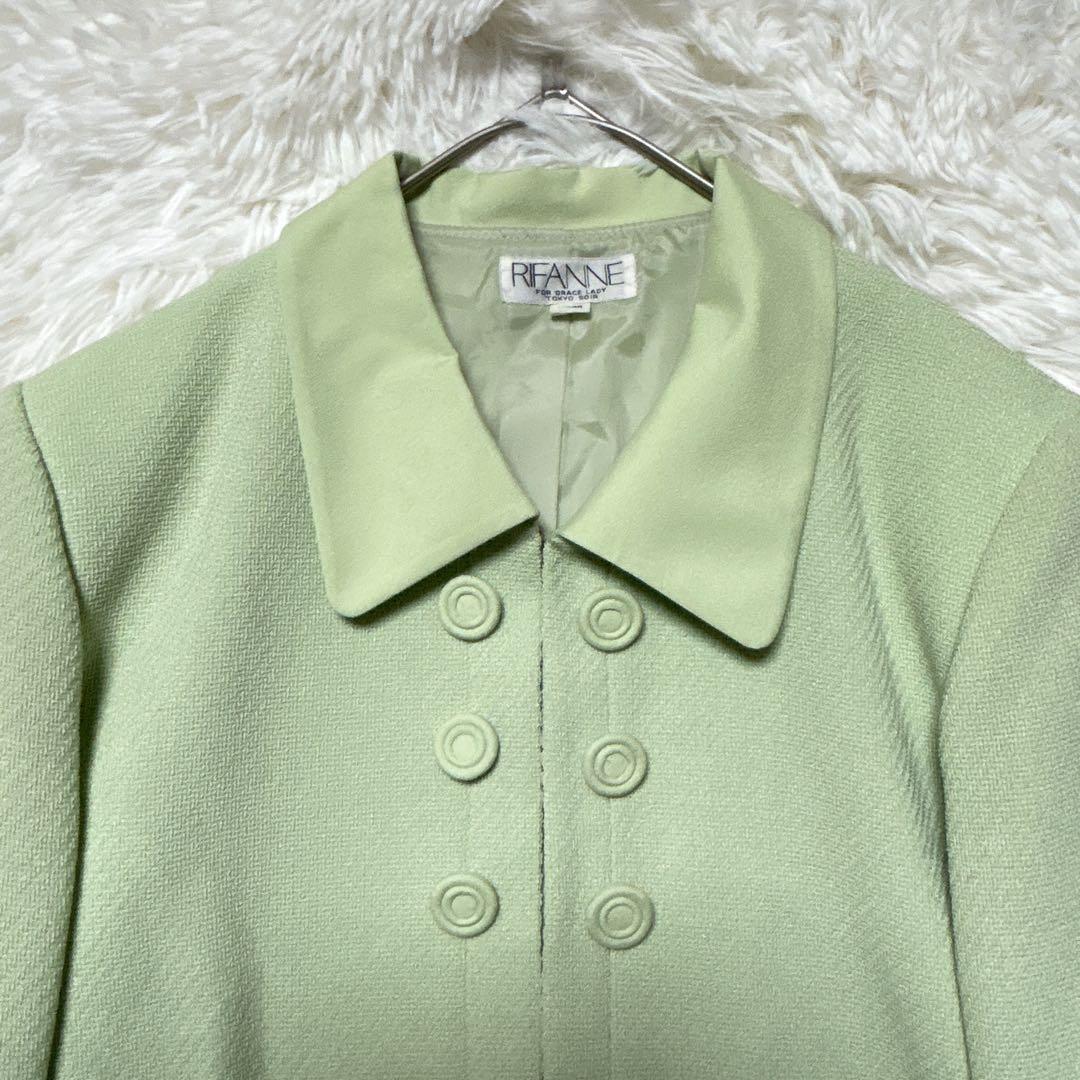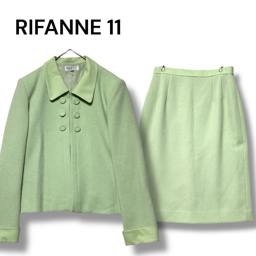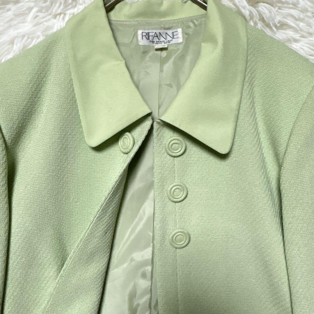 リファンネ 東京ソワール スカートセットアップ 11 黄緑色 肩パッド ひざ丈 FDF135