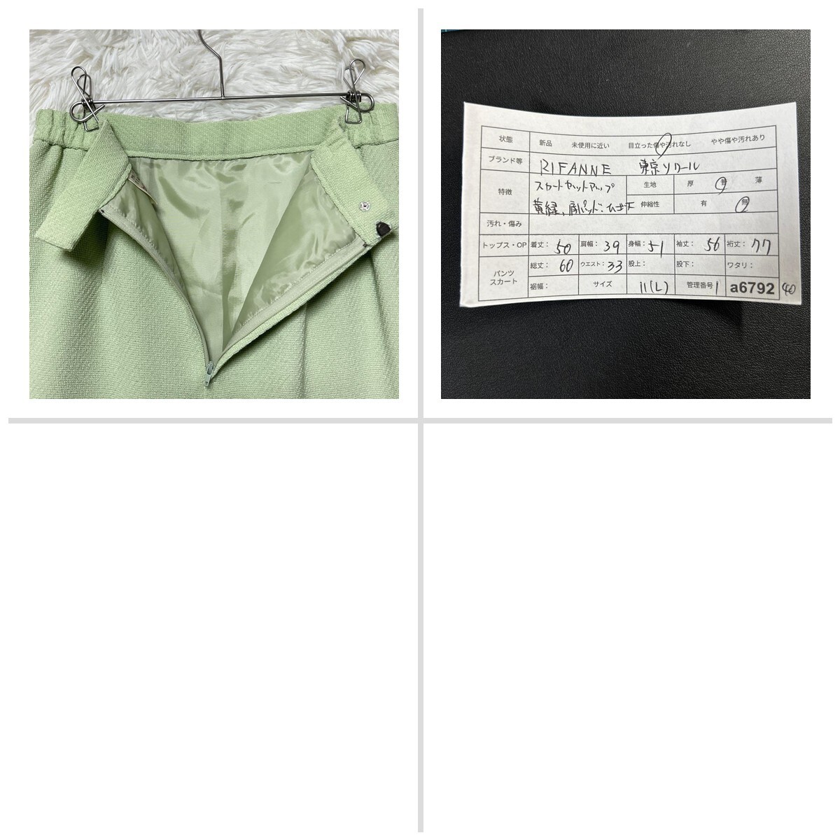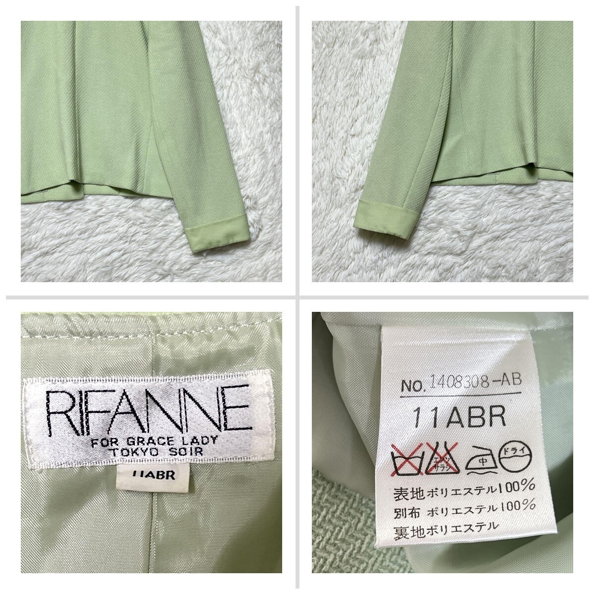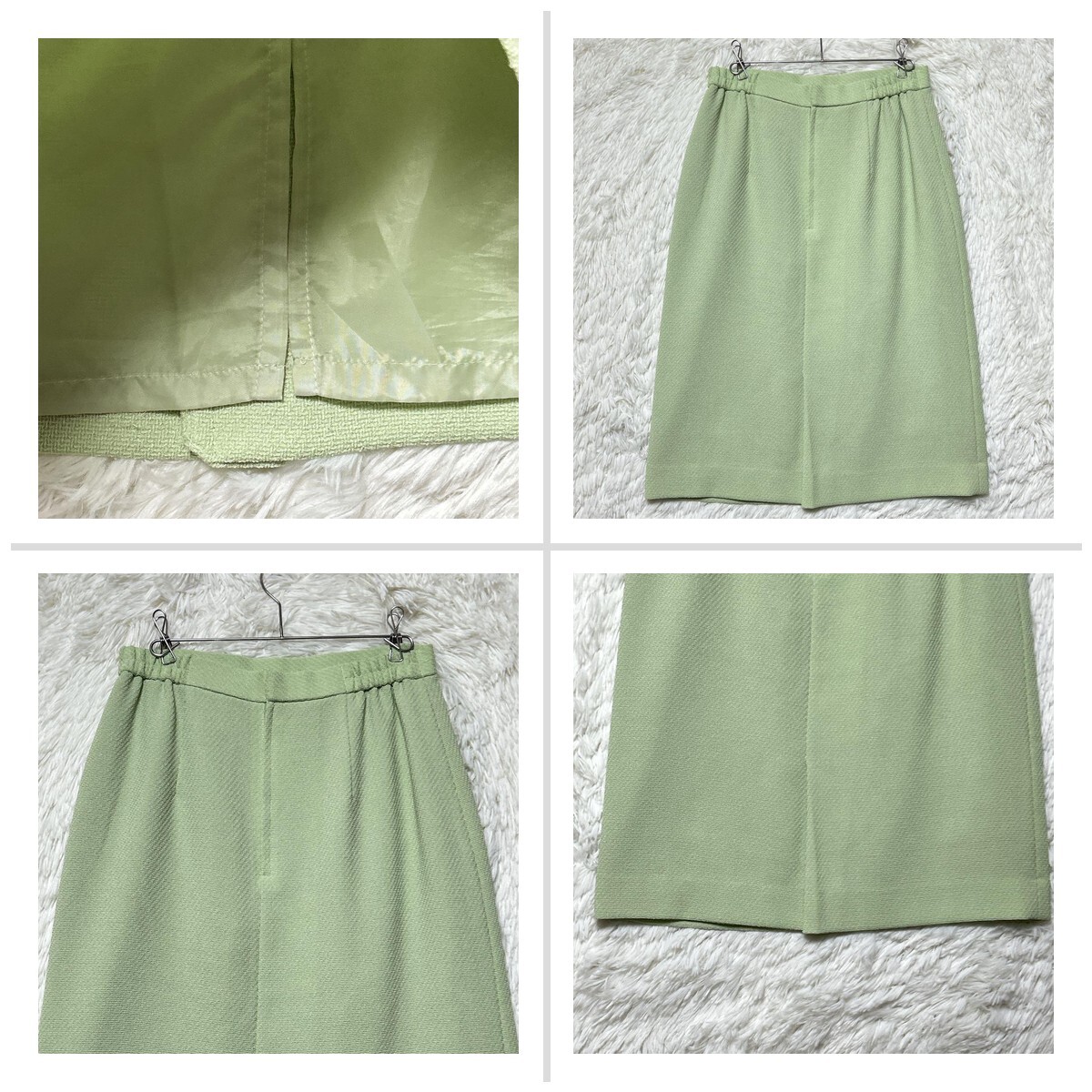 リファンネ 東京ソワール スカートセットアップ 11 黄緑色 肩パッド ひざ丈 FDF135