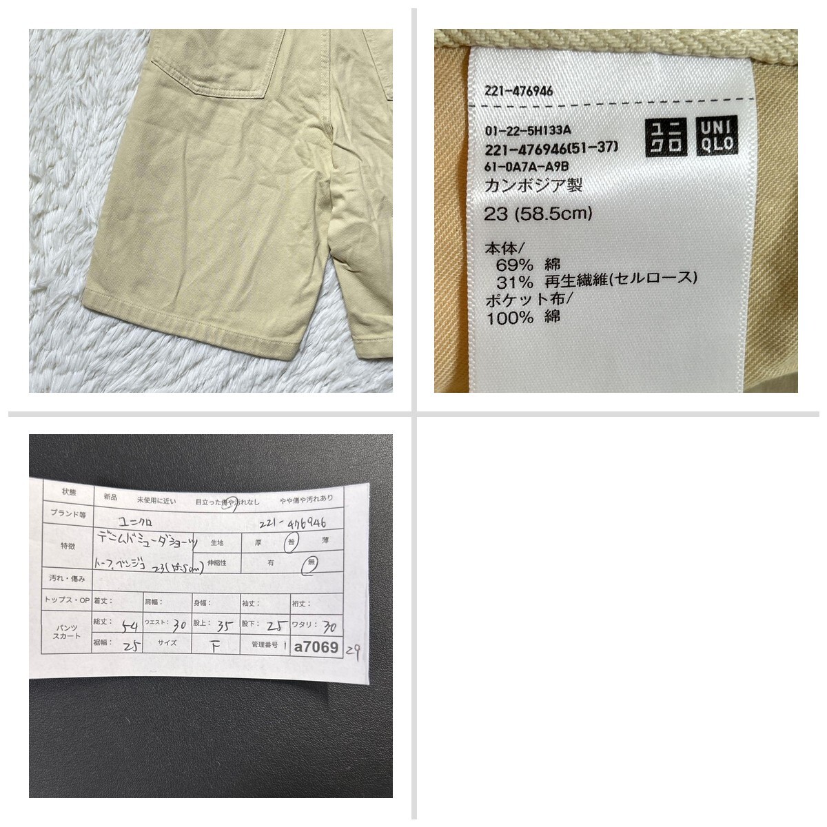 ユニクロ デニムバミューダショーツ ハーフ ベージュ 23(58.5cm) 54D6C1