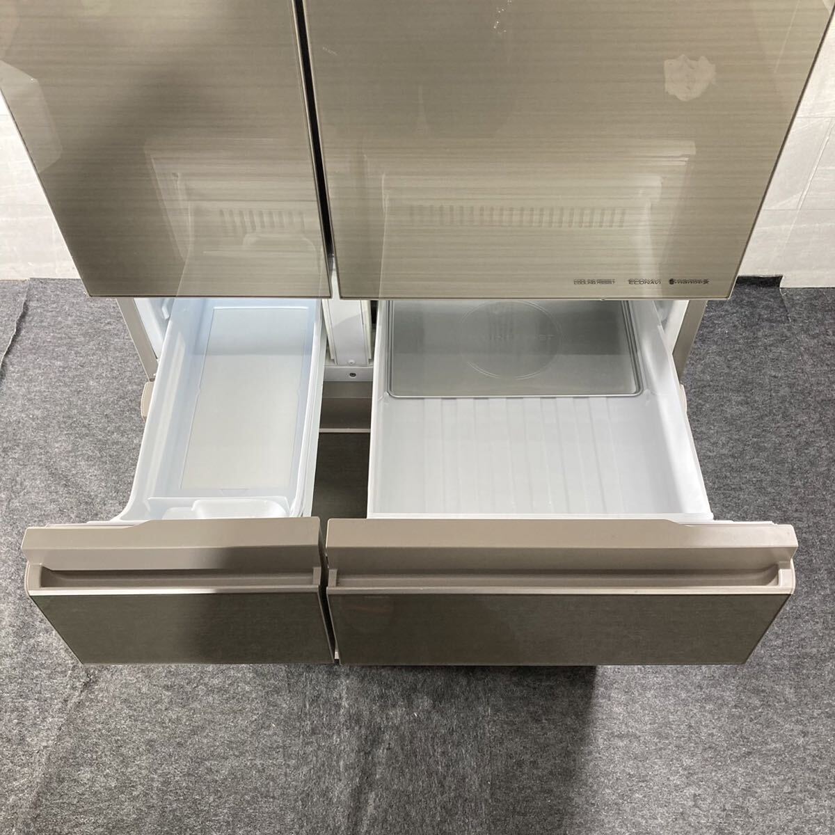 冷蔵室下部の蓋に割れがございますが、その他大きく目立った傷や汚れはございません。