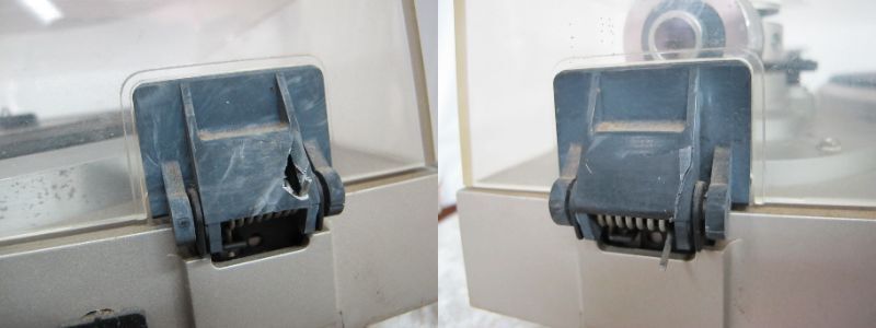 留め具に破損が見受けられ、蓋を開けたままにできません。