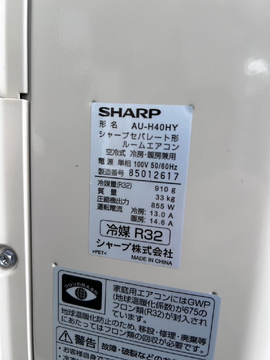 シャープ AU-H40HY 室外機のみ 未使用品の出品となります。状態は未使用品ですが、長期倉庫に保管された為、梱包の痛みあります。未使用品として入荷してきてはおりますが、未確認ですので、本体に凹みや傷が有るかもしれません。動作につきましては室外機が有りませんので動作未確認となります。動くかどうかの保証は致しかねますので、動作及び外装などノークレーム・ノーリターンでお願いします。超特価の26800円スタートでお願いいたします。落札価格に別途消費税がかかります。発送は佐川急便の送料着払い(保険加入不可)を予定しております。システム上送料0円と表示されてしまいますが、送料着払い運賃がかかりますのでご了承ください。エアコンの室内機のみ、室外機のみの商品はほかの販路でも販売させていただいておりますので、ご希望の場合はなるべく早くご入札をお願いします。入札がない場合は取り消しをすることがございますのでご注意ください。ほかにも多数出品しておりますのでよろしくお願いいたします。