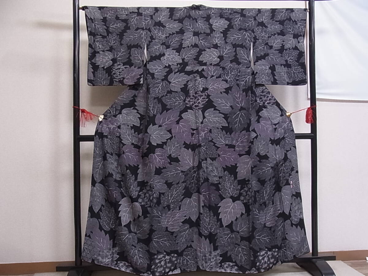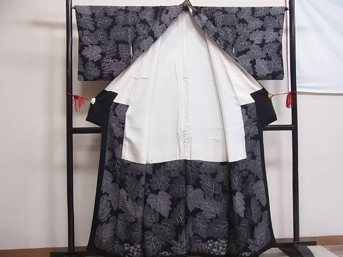 ★きもの結★希少 藤娘きぬたや 伊藤嘉秋 訪問着 黒地 蔦の葉 落款あり 正絹★sa151