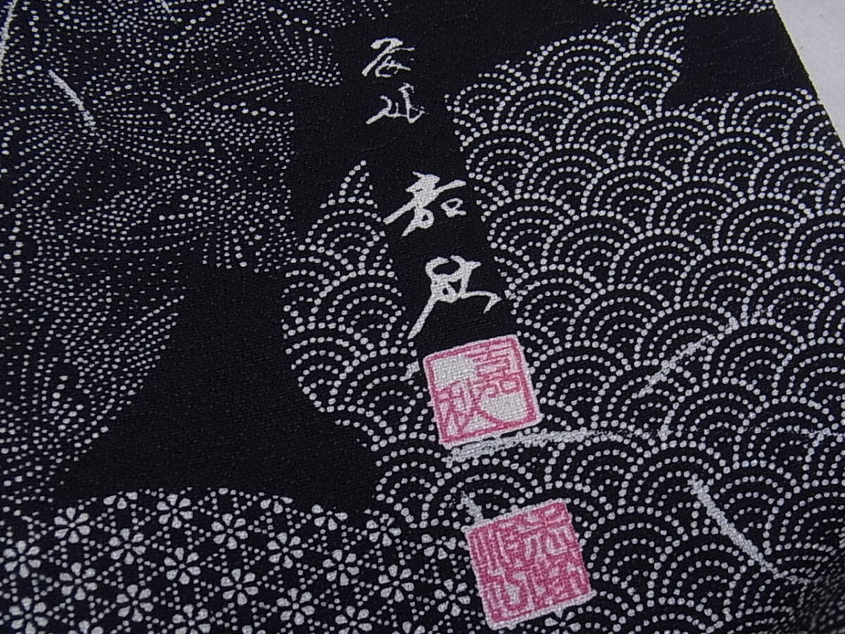※藤娘きぬたや・伊藤嘉秋落款ありの訪問着、この様な柄、黒色は大変希少な商品になります。