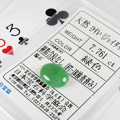 | 品名 /【SJ】新品 ヒスイ(ジェイダイト) 7.76ct ジュエリールース 材質 / 天然ヒスイ(ジェイダイト) 縦・横 / (約)14.3mm 11.6mm 厚さ / (約)5mm 総重量 / 7.76ct 日宝協ソーティング付き 【SJ】/ 新品製品 品番 / AED552 参考小売価格 / 116,000円 |