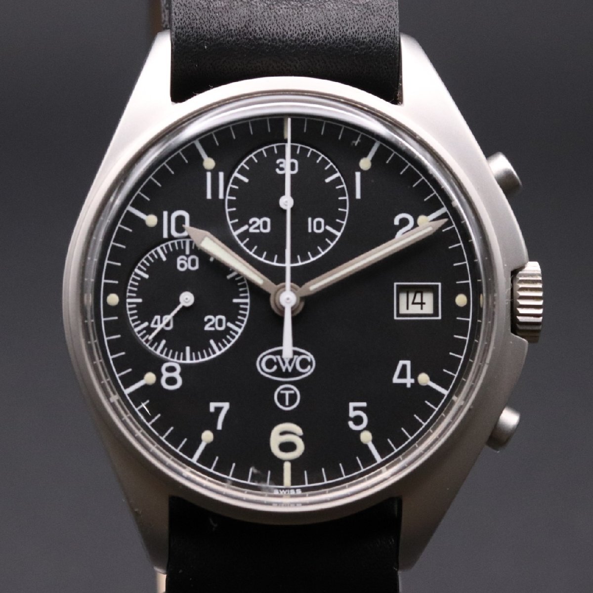 | CWC ミリタリー クロノグラフ 手巻き 機械式 腕時計 6645-99 924-3306 メンズ 稼働品 ブラック文字盤 社外ベルト |