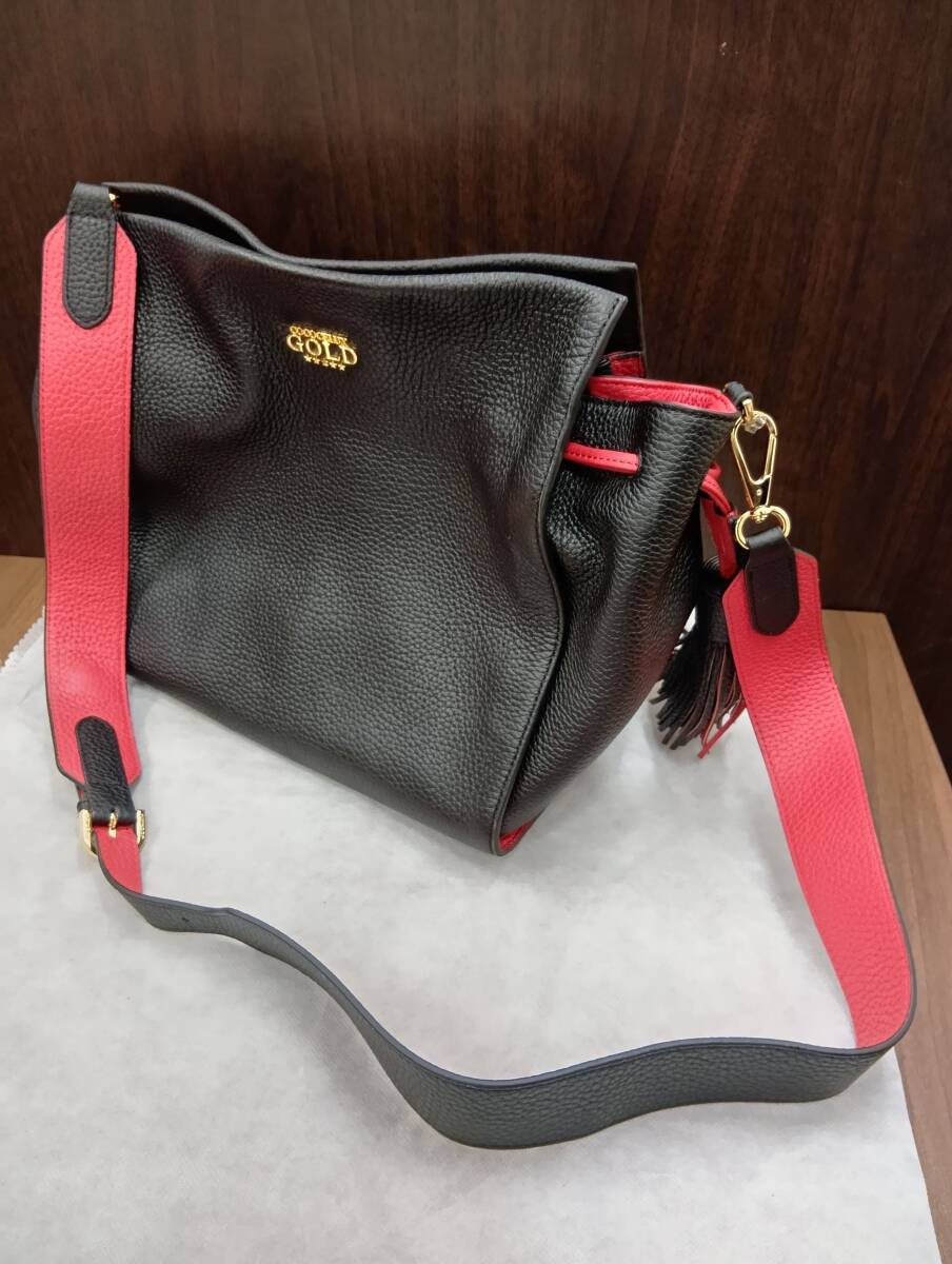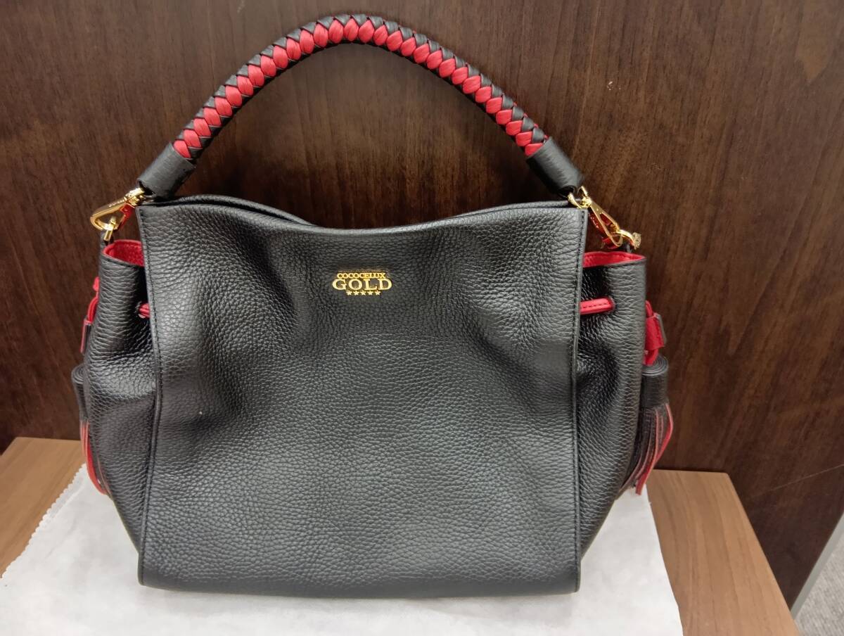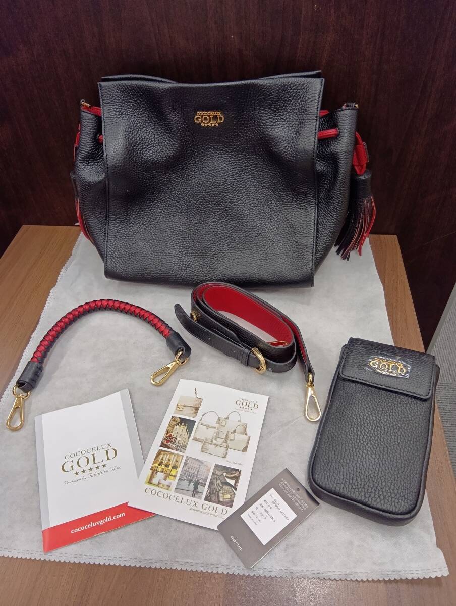 | 14729 本革 レザーバッグ【COCOCELUX GOLD ココセリュックス ゴールド 2WAY クロスボディハンドバッグ Black/RED】保管品 | ||