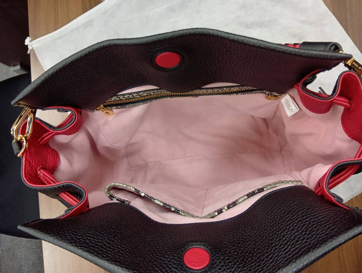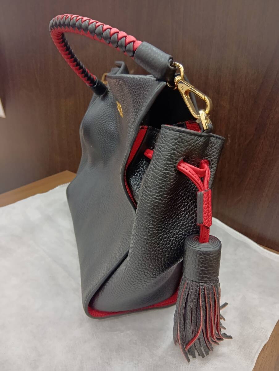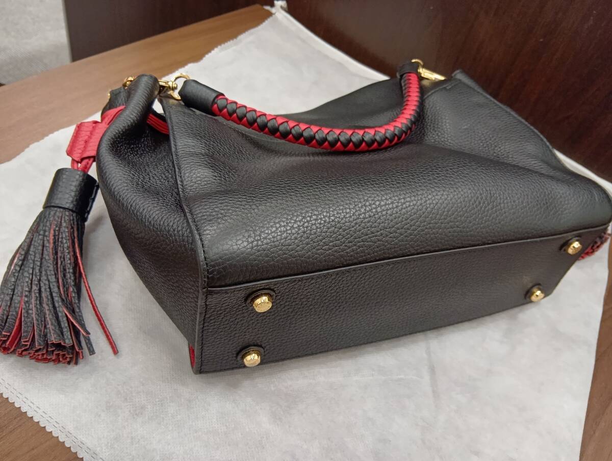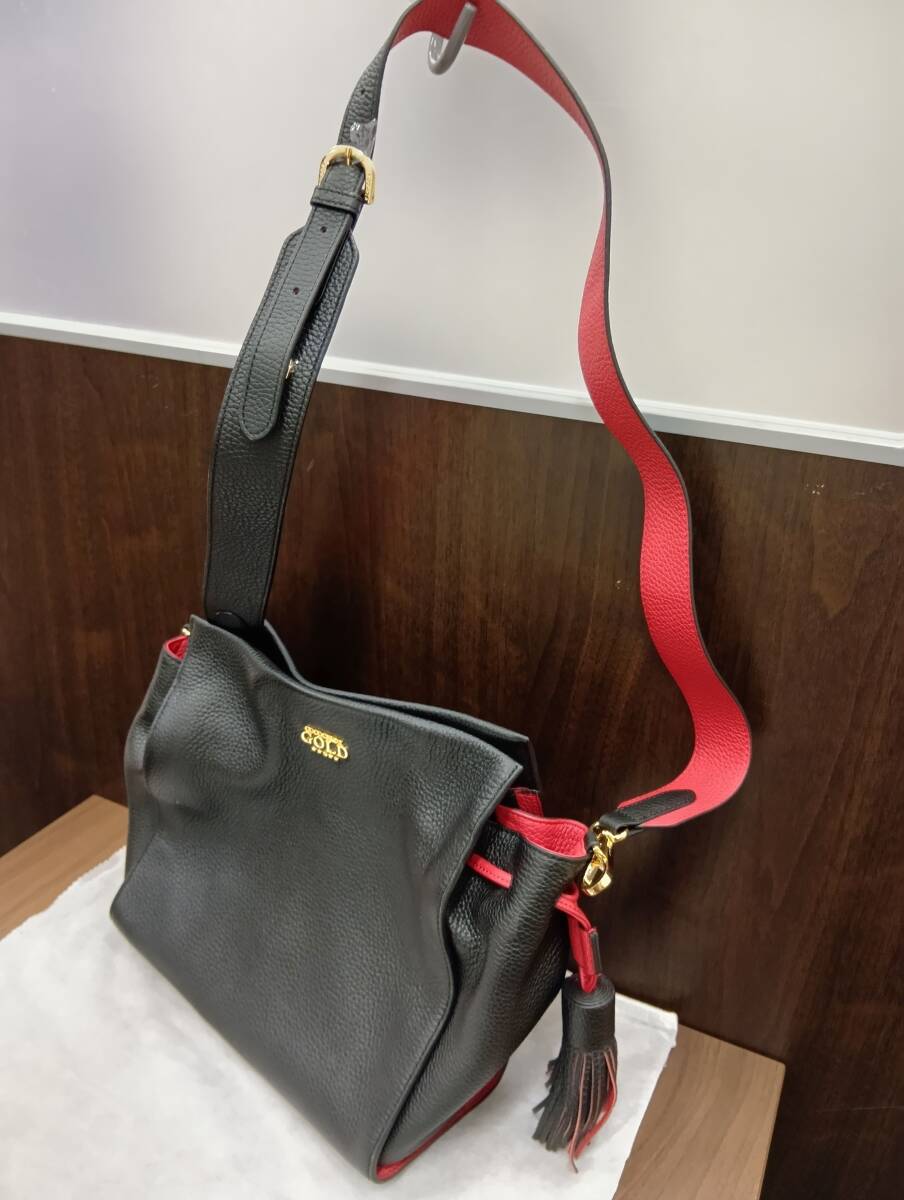 | 14729 本革 レザーバッグ【COCOCELUX GOLD ココセリュックス ゴールド 2WAY クロスボディハンドバッグ Black/RED】保管品 | ||