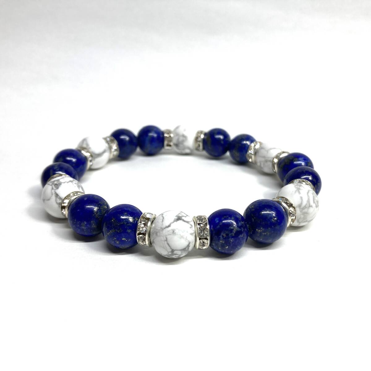 ラピスラズリ&ハウライト パワーストーン ブレスレット 天然石ブレス (シルバー) 10mm メンズ・レディース ストレス解消 ☆