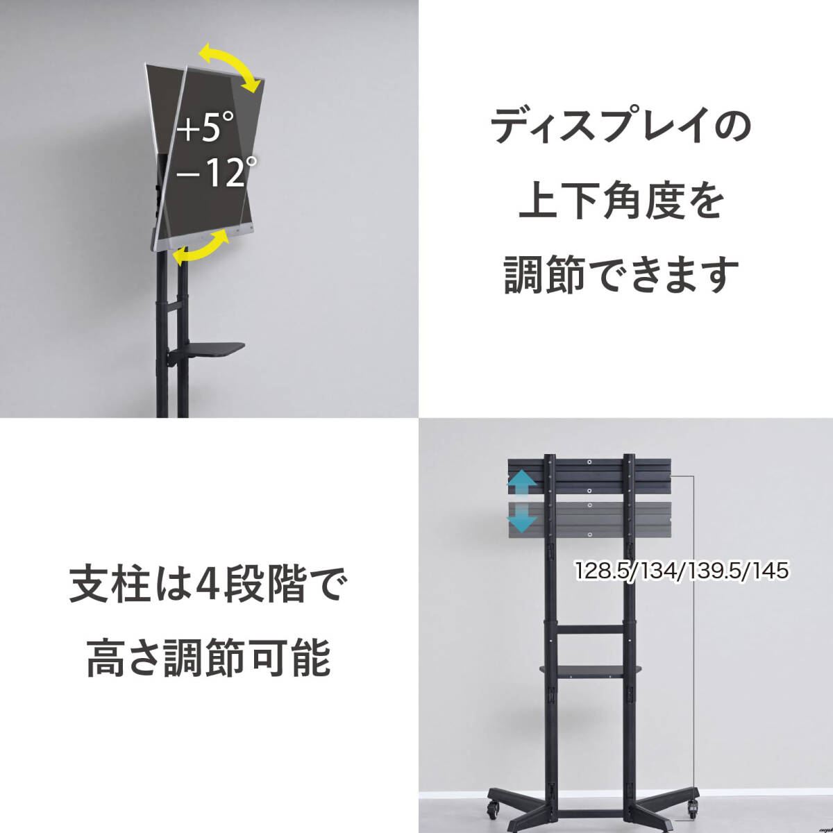 高さは4段階で調整でき、ディスプレイの上下角度も調整可能なので、目線に合わせた快適な視聴位置を設定できます。