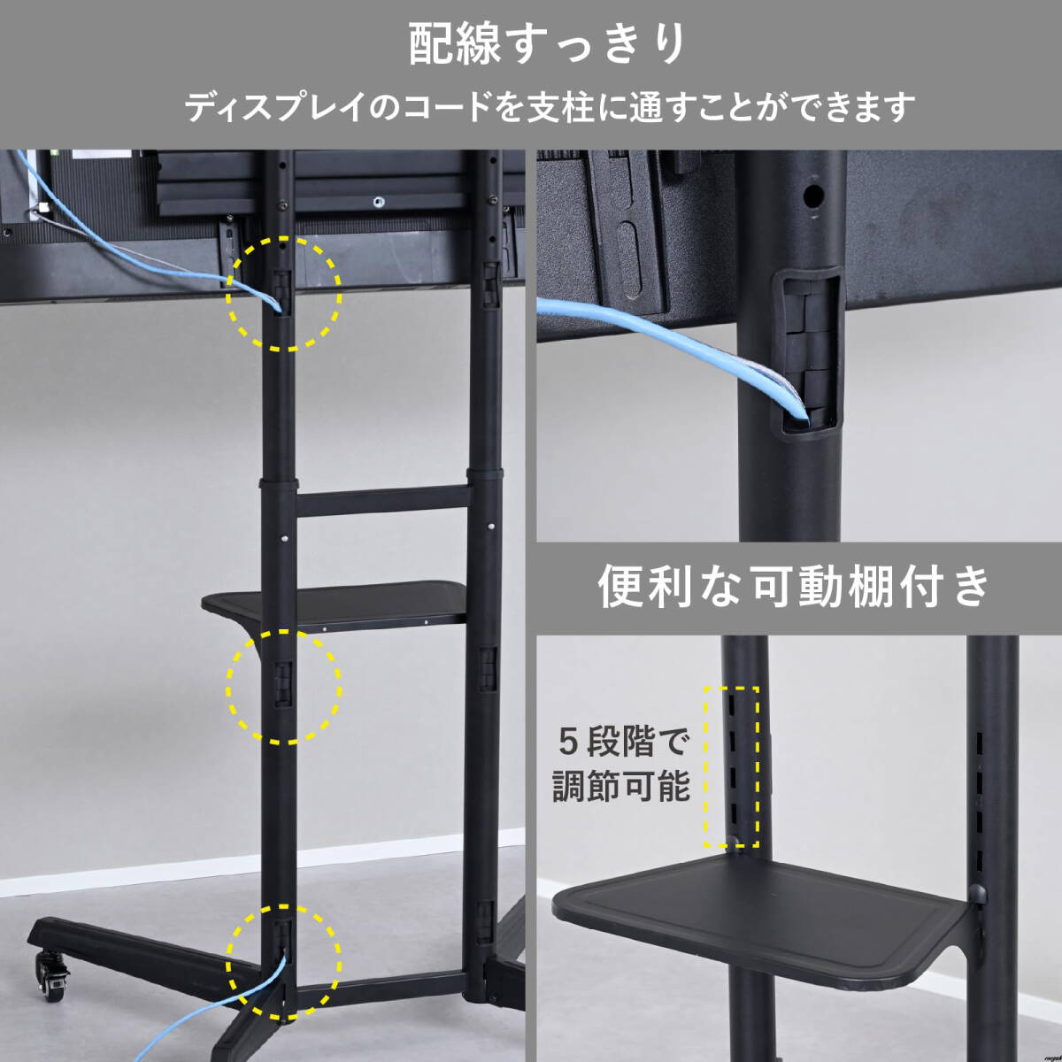 【キャスター付きで、移動や掃除が簡単】 テレビスタンド 37~70インチ対応 壁寄せ 高さ調整 棚付き VESA対応 移動式 自立式