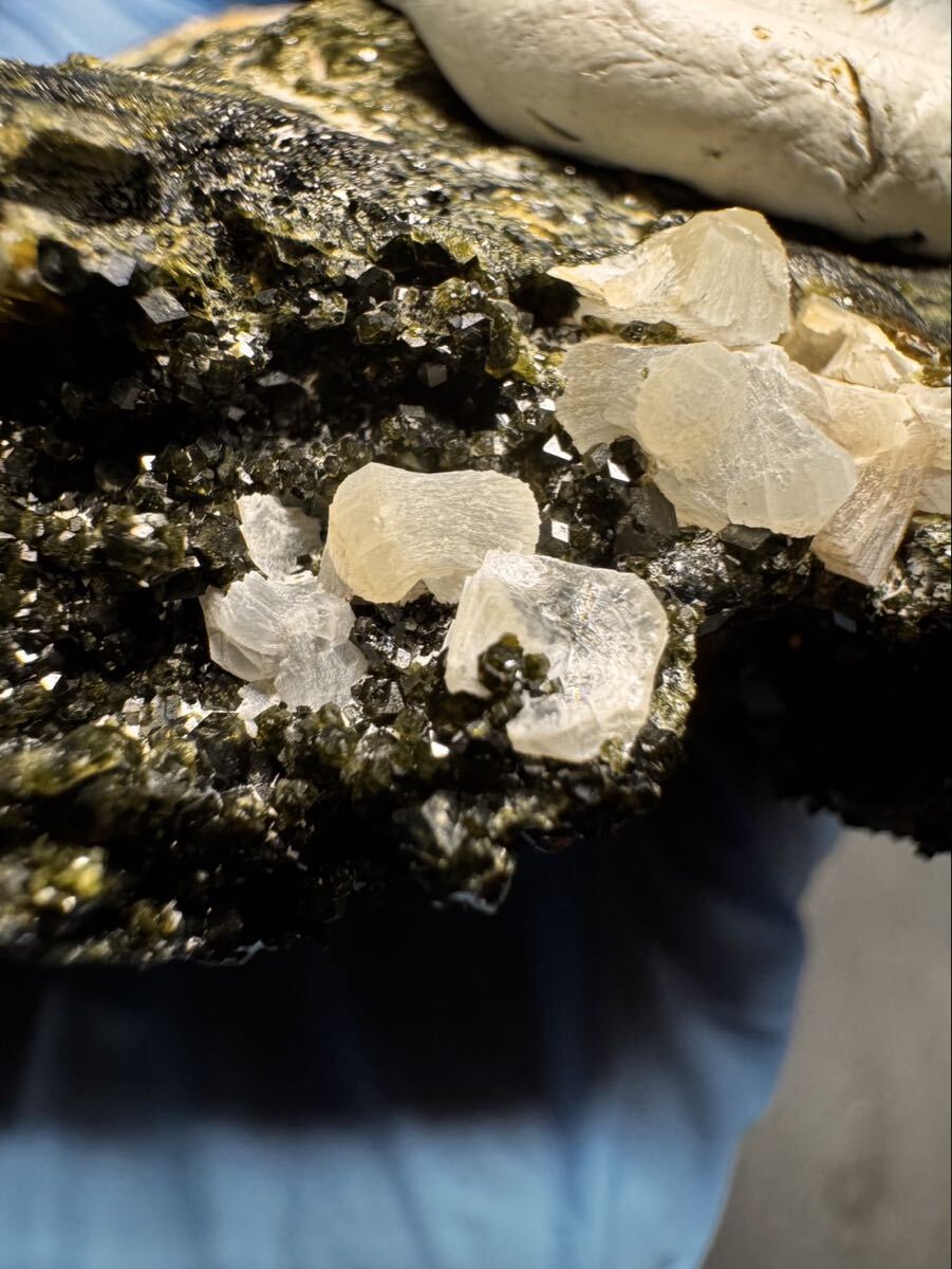 岐阜県 美濃市 蕨生 第二金華鉱山の灰鉄柘榴石,葡萄石です。