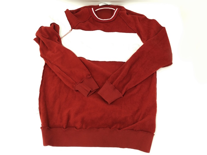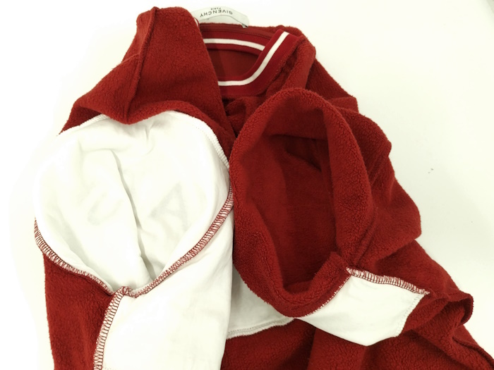 | ◆商品情報 | ・カラー:レッド ホワイト ・素材/ライン:コットン100% ・表記サイズ:XS ・着丈:最大約74(cm) ・身幅:最大約52(cm) ・肩幅:最大約43(cm) ・袖丈:最大約67(cm) ※多少の誤差はご了承下さい。 |