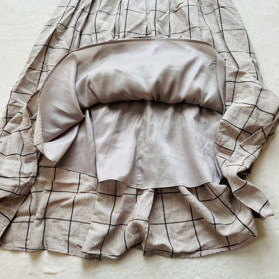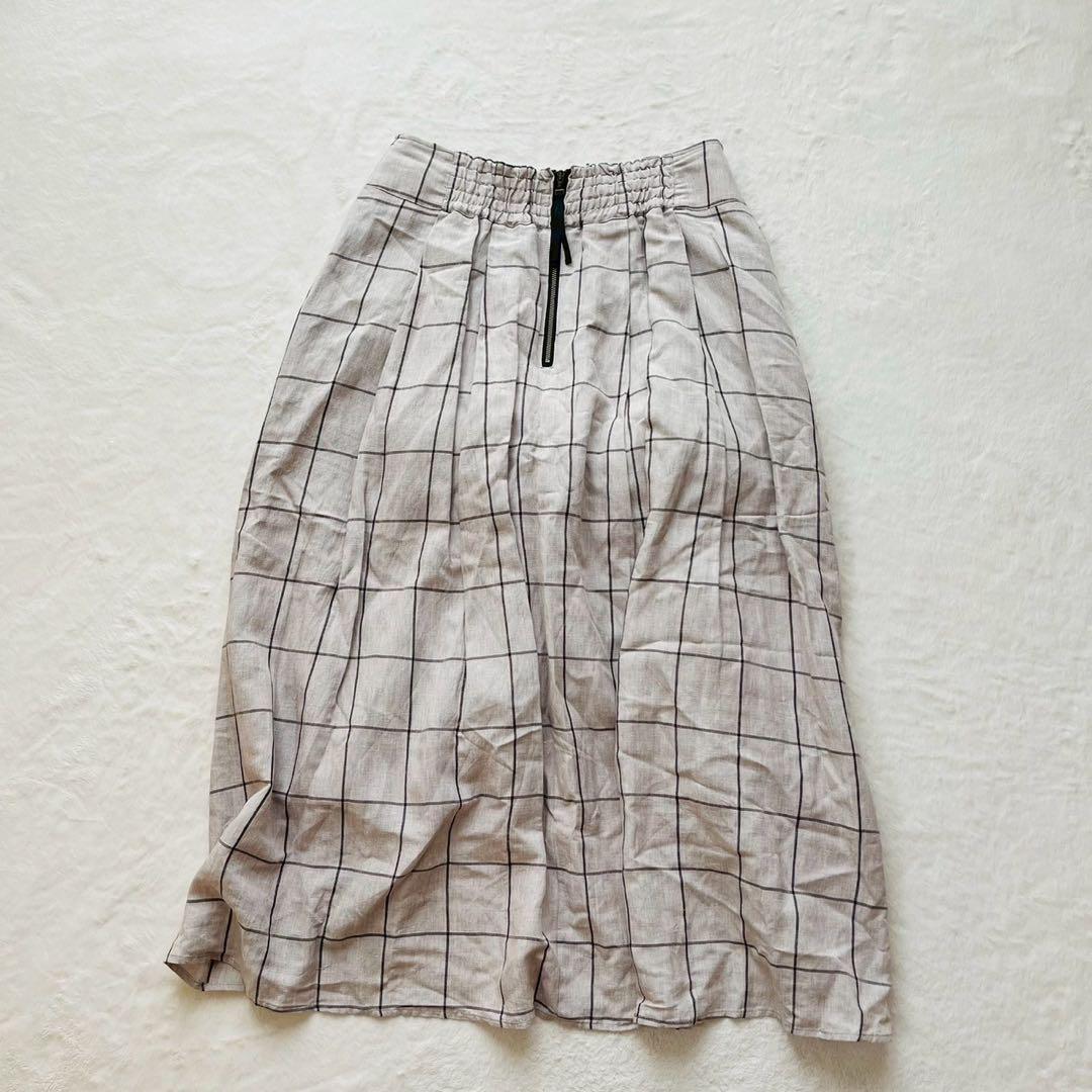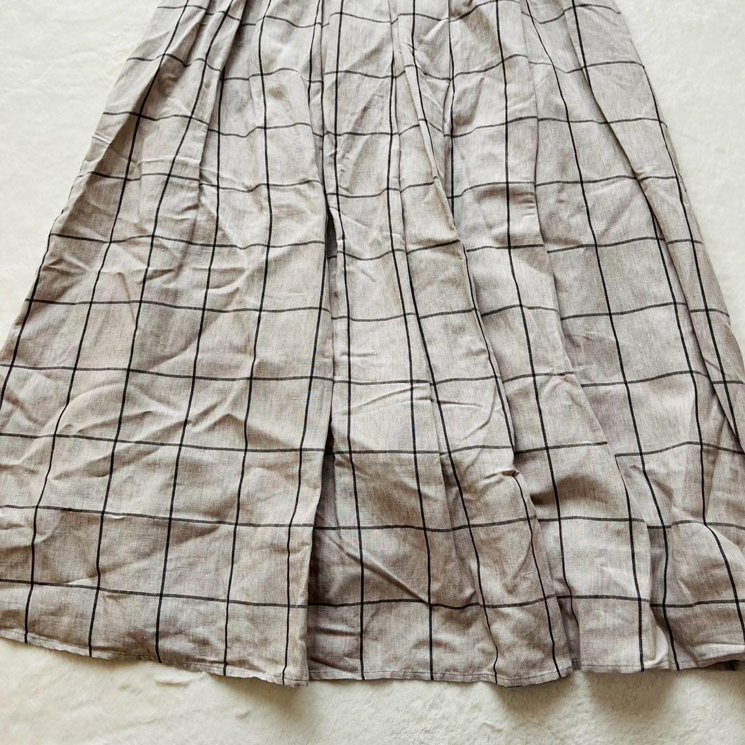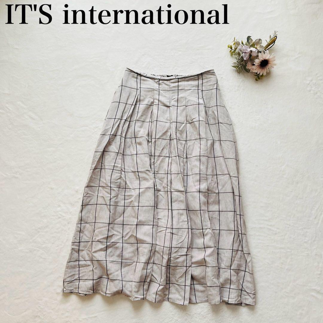 【イッツインターナショナル】 ロングスカート(M)麻混 フレア チェック ミモレ F32A8D